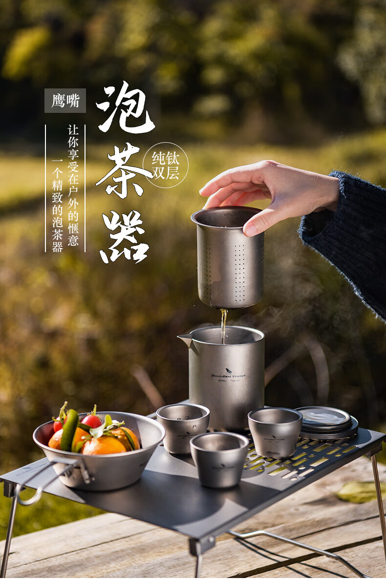必唯(BOUNDLESS VOYAGE)纯钛户外旅行茶具套装鹰嘴泡茶器双层茶杯防烫便携功夫茶露营煮茶 Ti3120D 茶壶