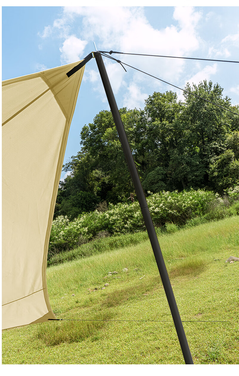 下狠心终于买了7075铝合金的天幕杆,原来的铸铁的的太沉了。这套天幕杆不仅轻便,接上后也非常结实,杆间的弹力连接让拼接更方便。