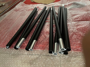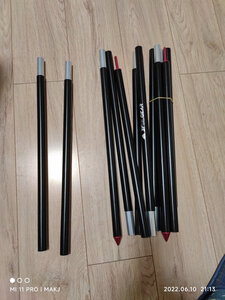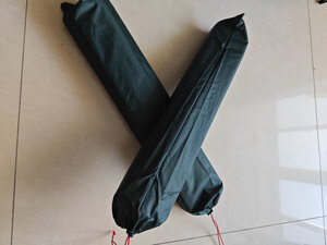 原来的天幕只带两个天幕杆,多加两根把一侧撑起来显得空间打一点,遮阳面积也会大一点直径19的没货了,就选了16的,以为会细,拿到手感觉很厚,撑起来天幕完全没问题,而且铝的重量也很轻。