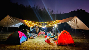 防水效果:防水效果应该不错吧,暴雨没试过,有机会试试再说 适用场景:野外场地,沙地没试过! 容纳人数:6个到8个人没问题! 透气效果:透气效果不错,就是配的风绳有点不够,