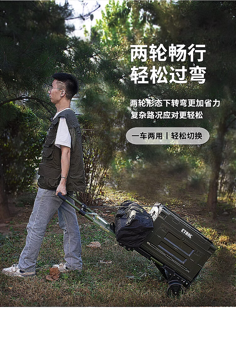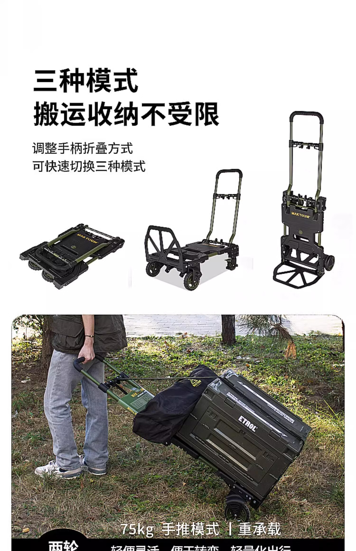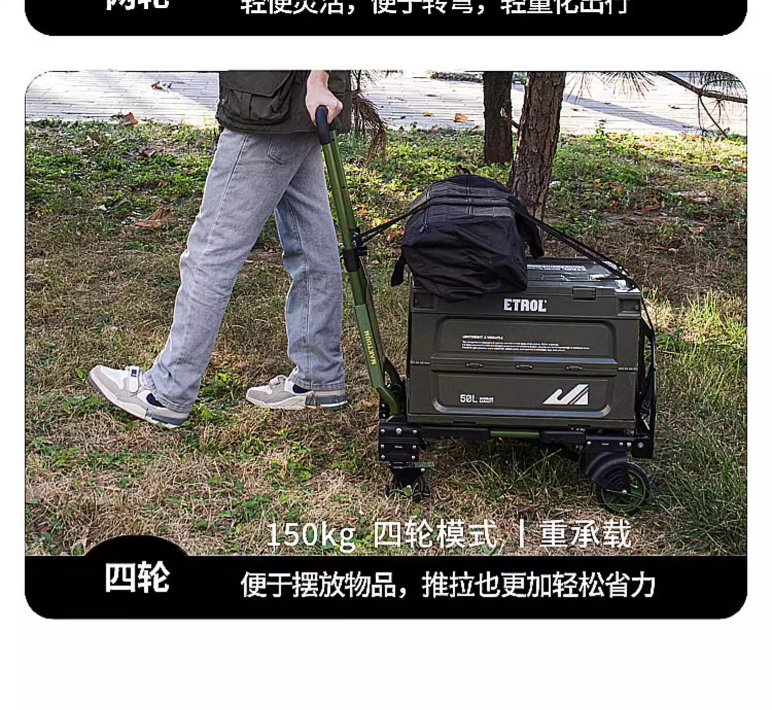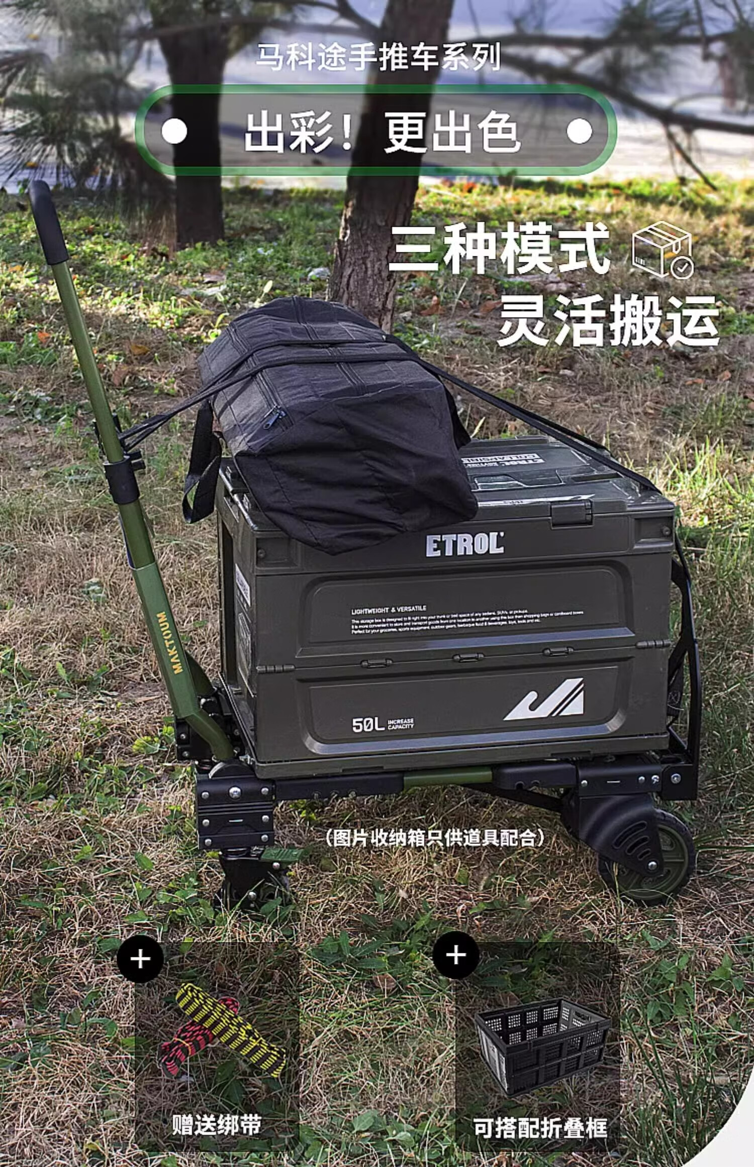 马科途公园款露营车户外野营野餐小拖车溜娃折叠手拉车拉货取快递买菜车 【公园款】小号黑色露营车 140L
