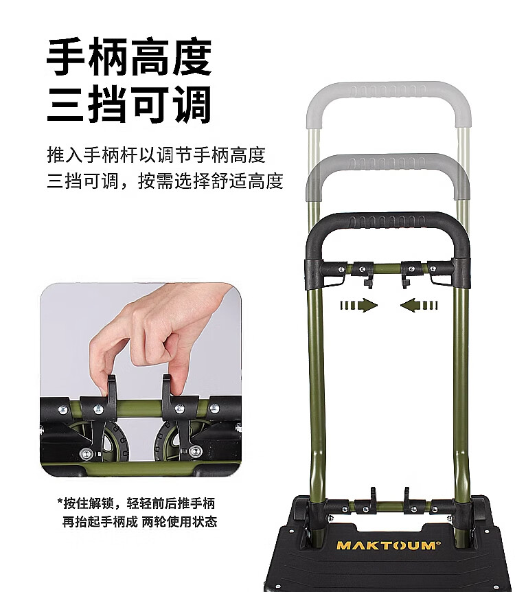 马科途折叠手推车手拉车拖车购物推车便携平板车拉货车小拉车搬运车 90T基础款(无刹车送弹力绳)