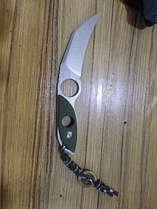 小三依旧还是那个小三,刀的完成度很高,锋利度还行,保持度差点,要经常磨才行。不过祖传的刃角不齐问题还是存在,这把爪刀特别顺手!!!