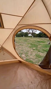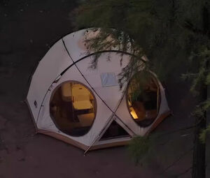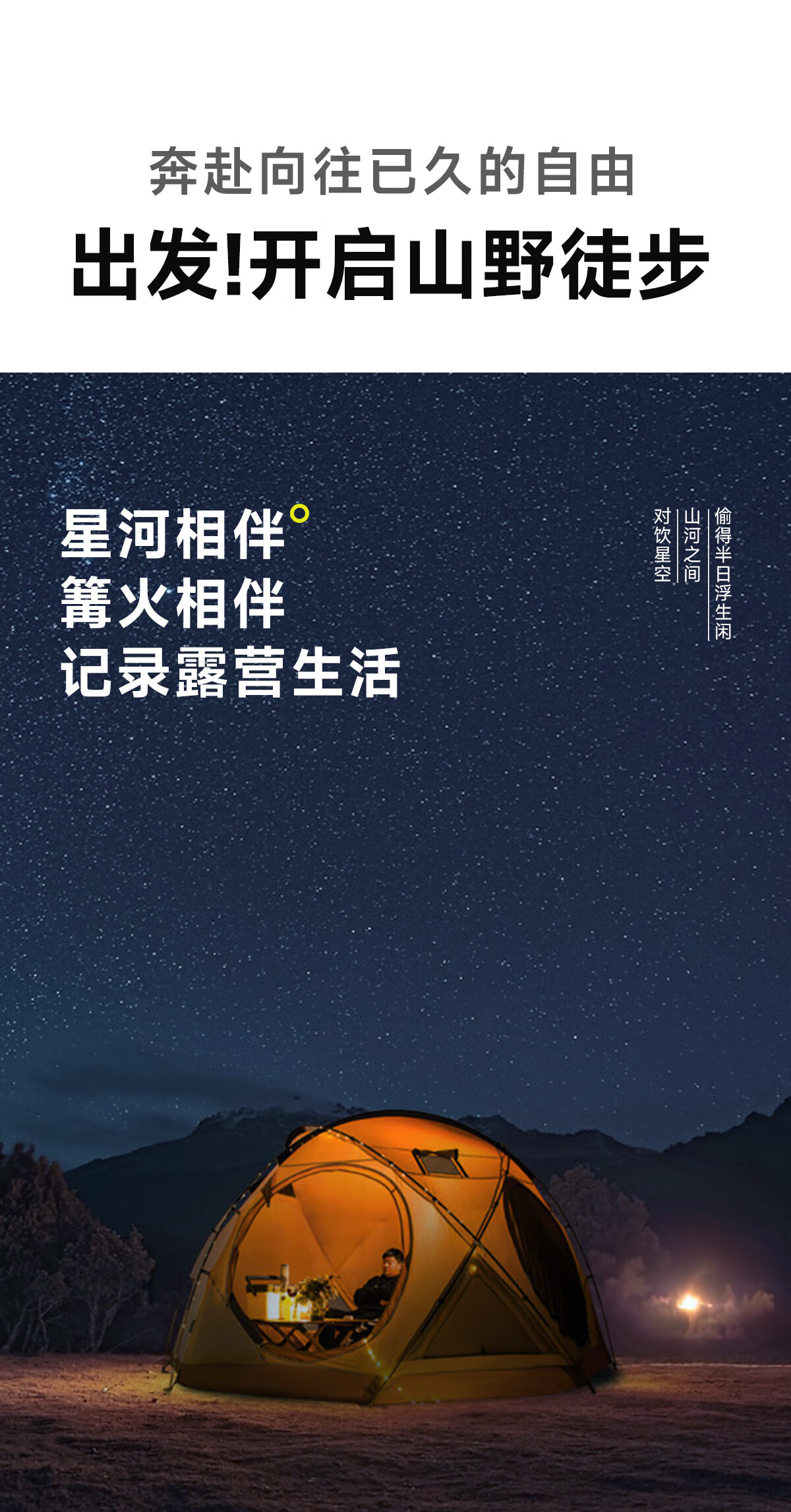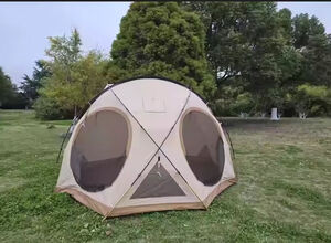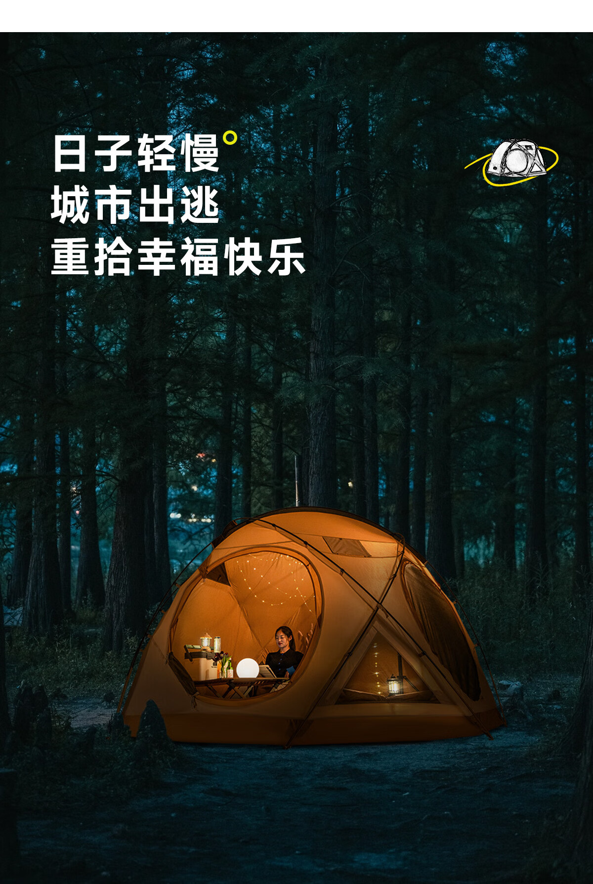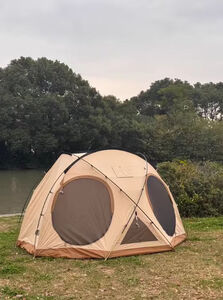 帐篷收到啦 怪不得叫球帐 外观就跟个半球体一样 科技感十足 空间很大 人在里面是可以站立的 一米九左右高度