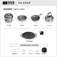 探险者(TAN XIAN ZHE)户外煮锅蒸锅露营锅具套装户外露营全套装备煮锅水壶蒸煮锅套装 蒸煮锅具四件套+木把手烤盘