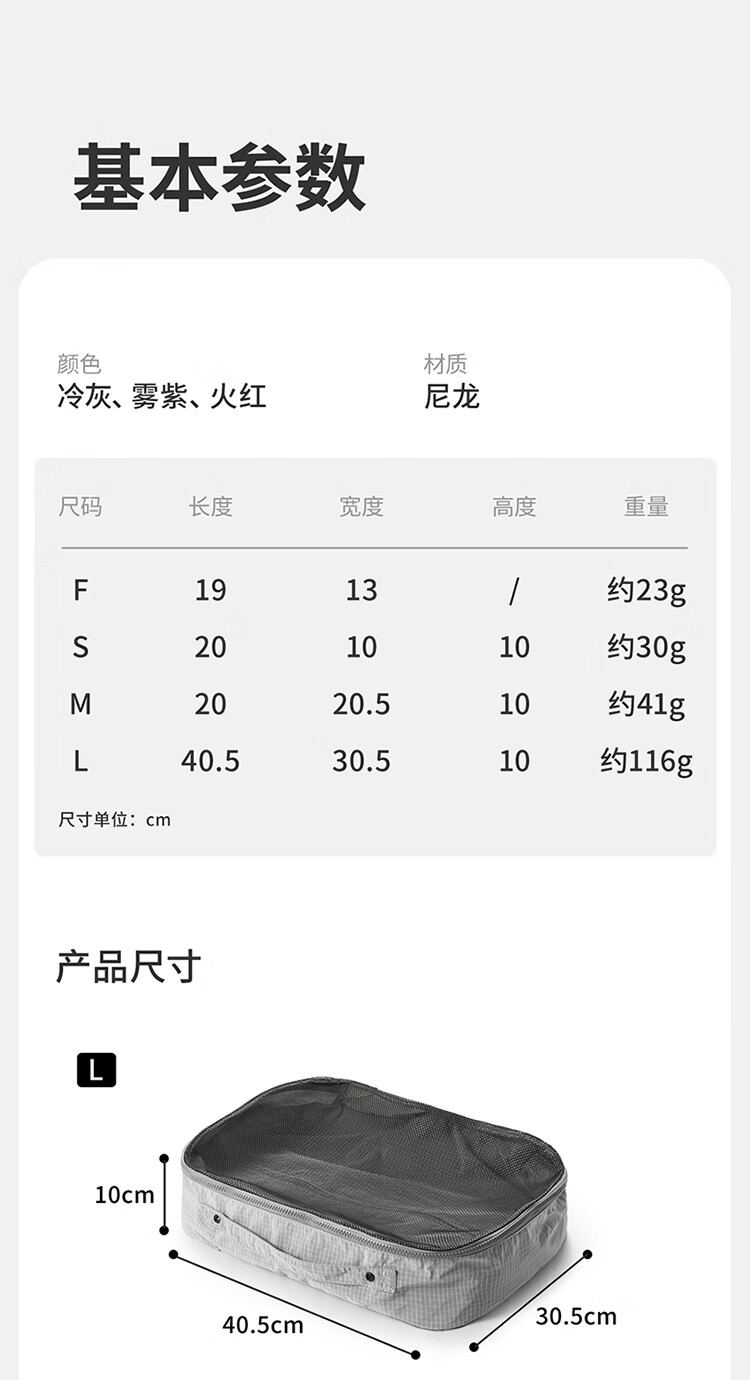 Naturehike挪客出差旅行收纳包衣物收纳袋分装袋行李箱衣服整理袋便携化妆包 冷灰/M