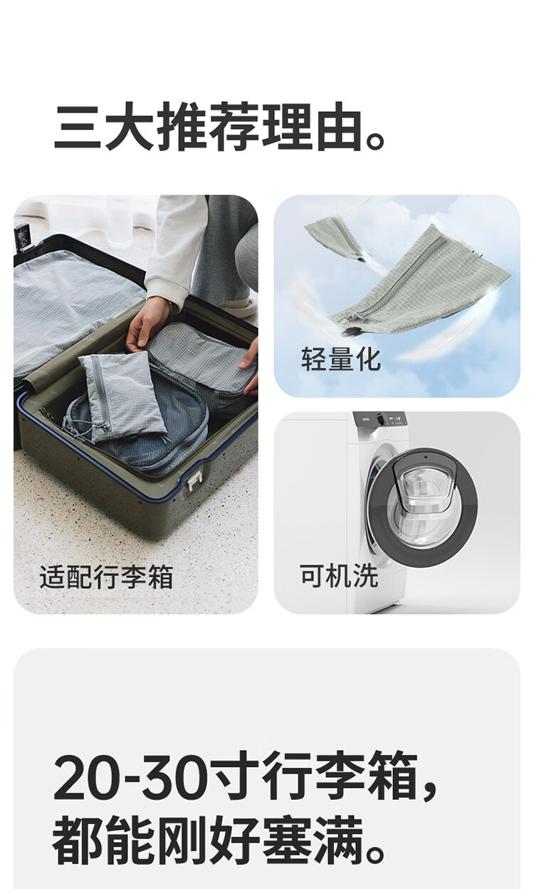 有收纳袋儿质地非常轻薄,携带方便,设计也特别合理。无论是旅行还是居家,收纳都非常合适。缺点就是颜色少了一点儿,很喜欢,已经买很多次了