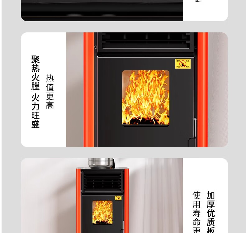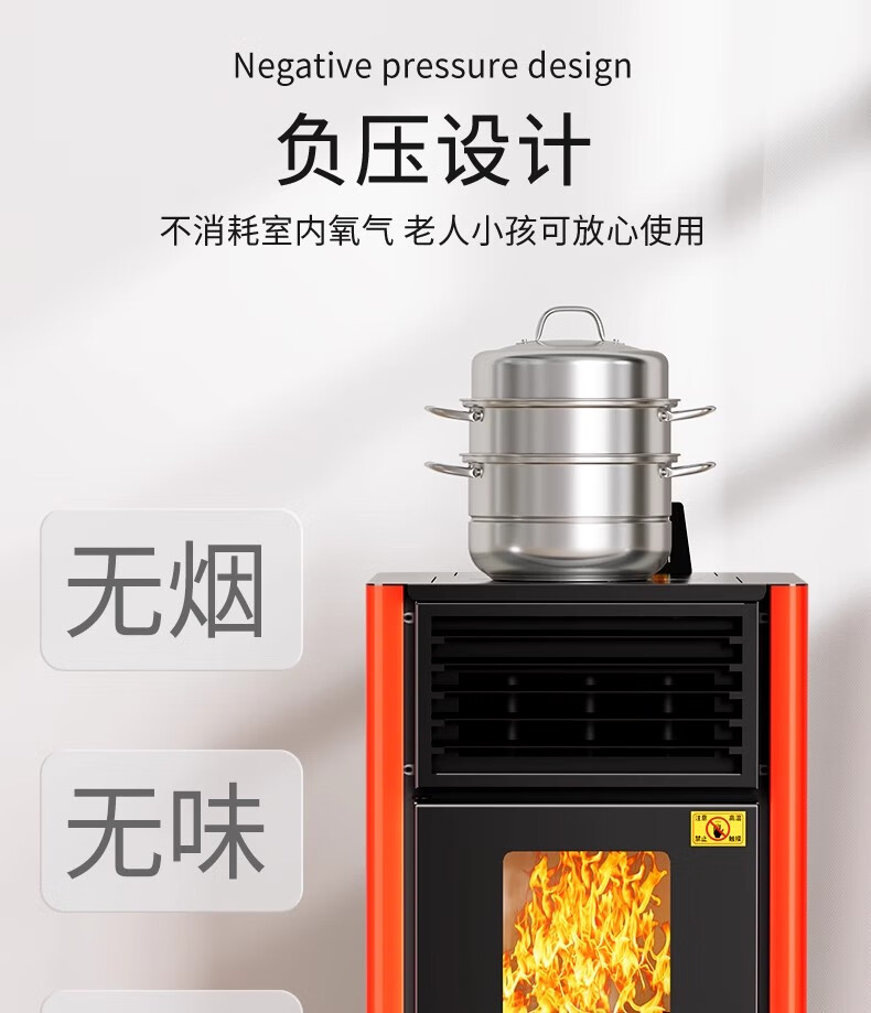 奉希【送货上门】全自动生物质颗粒取暖炉家用室内无烟节能环保 柴/颗粒-两用80型 不可烧水款