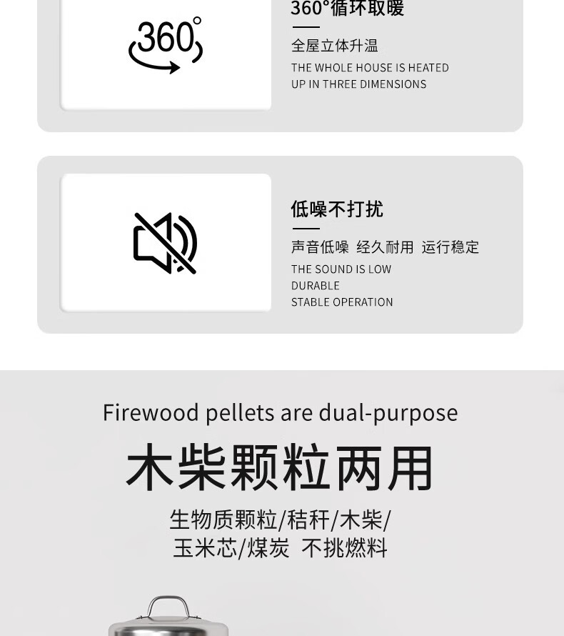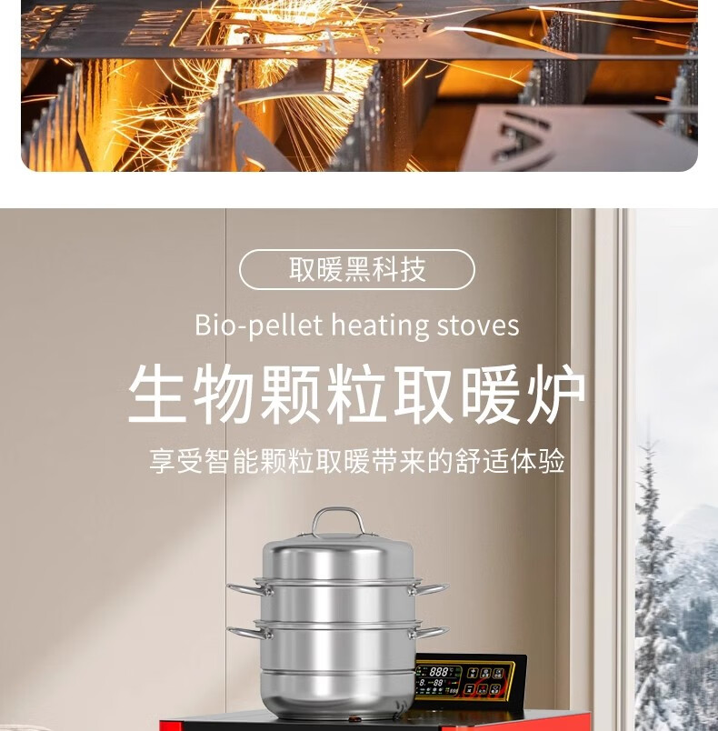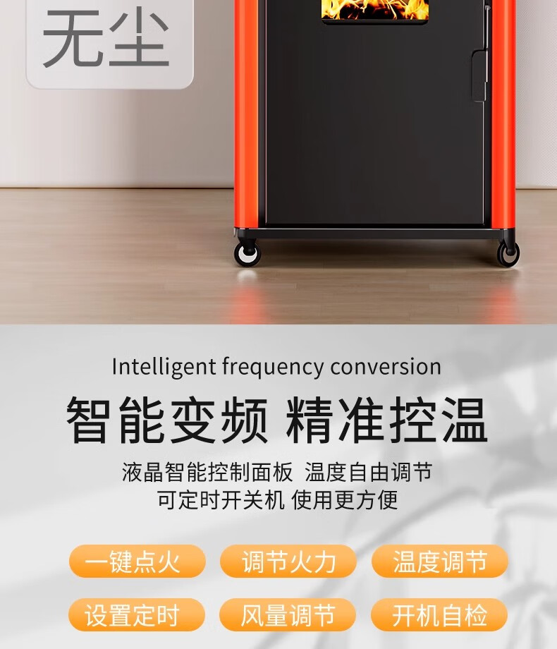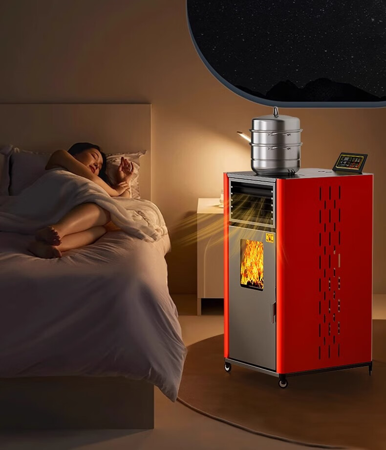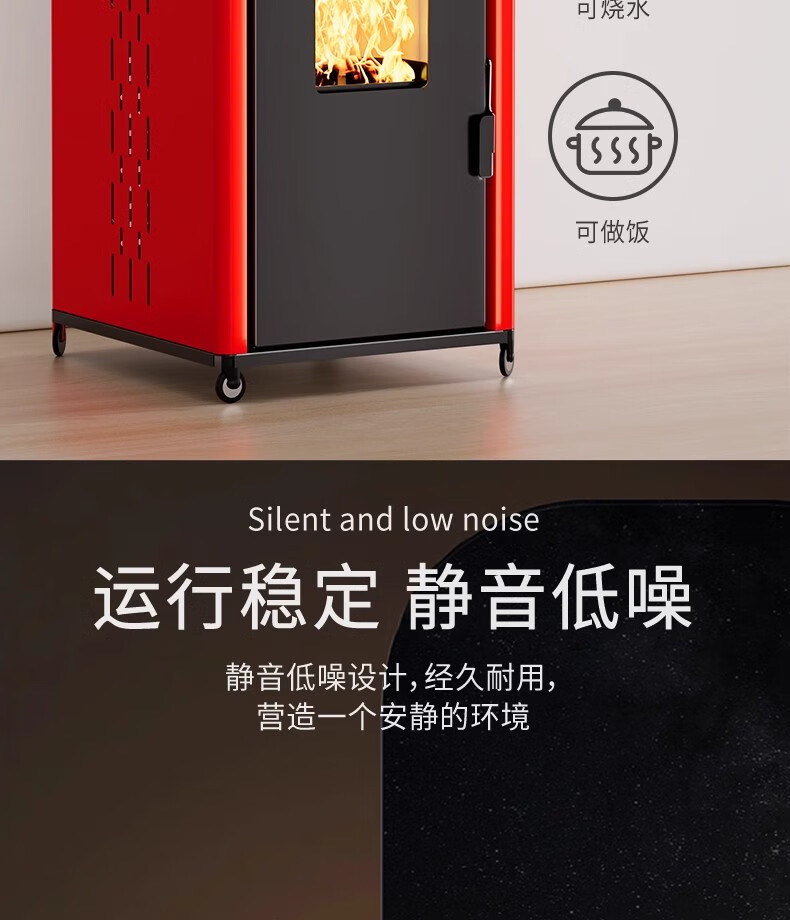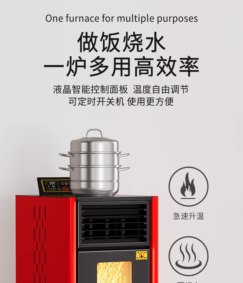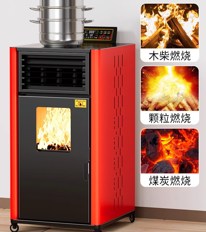 丰强鸿新型颗粒取暖炉全自动生物质燃料柴火家用室内供暖环保无烟水暖 【WiFi旗舰+炊事烧烤+颗粒木柴两用款】60双绞龙双电机