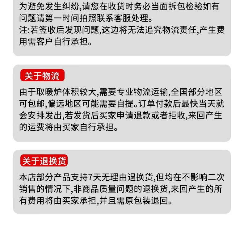 东西收到了,这个东西制热效果特别快,用了几个小时颗粒但是没用多少,好多不懂得问题卖家很贴心都一一解答,还有这种烟管尽量别搞太长 确实比空调要省哈哈哈新科技