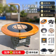 嘉久福送货上门移动铁锅炖灶台桌柴火灶家用烧木柴地锅鸡柴火鸡灶农村 1.2米圆桌+碳盆+涮烤一体