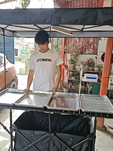 大号露营车摆摊车夜市小推车升降桌柠檬茶餐车营地野餐车聚拢折叠 黑色车+167*60黑桌板+(黑)超大棚
