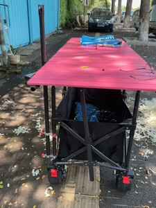 露营车颜色很鲜艳!适合摆摊,自己出去游玩看着心情也好!远远一看就知道是自己的 质量很好 底下能上去100斤的人,已经测试过! 雨伞抗风抗吹抗晒,比较大的伞很实用! 买的最大底部结实能储藏很多东西! 值得推荐想买的可以入手!