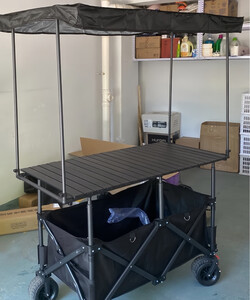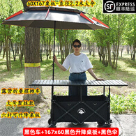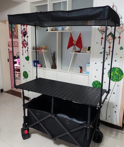加大露营车摆摊小推车带遮阳伞聚拢收纳户外营地车升降桌夜市拉车 黑色车+167*60黑桌板+(黑)大伞