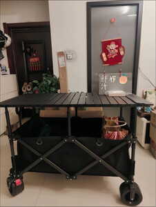 牧行带桌板露营车折叠聚拢型推车户外拉车摆摊桌车GL4 480L 卡其聚拢车+120加高摆摊桌