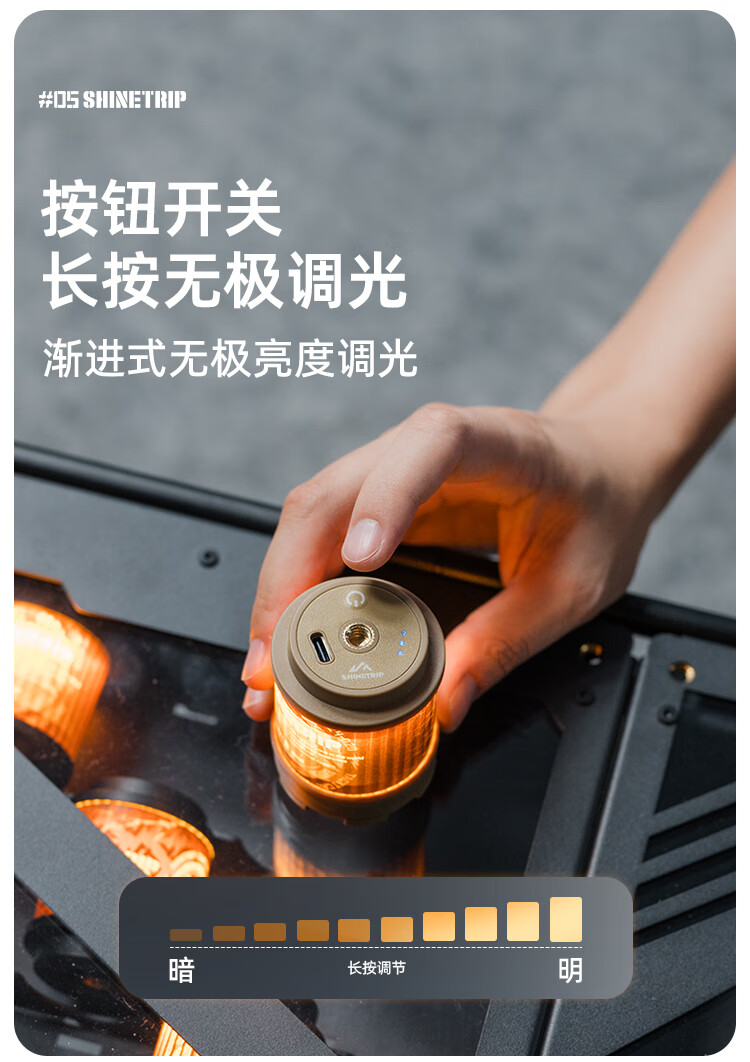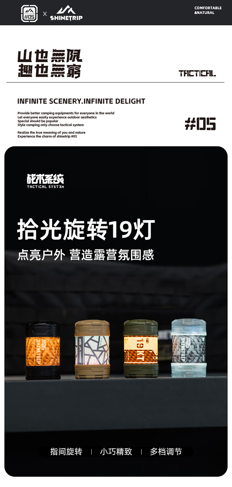 山趣(ShineTrip)户外05系金属拾光旋转19灯指尖旋转多玩法四档调节露营氛围灯 旋转渐变-逐暮黑