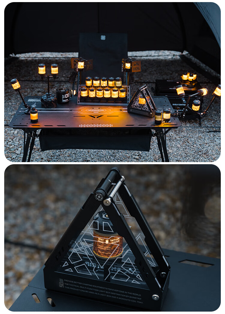 山趣(ShineTrip)户外05系铝合金战术滑板桌黑化露营多功能便携IGT可拓展置物板桌 滑板桌套装-大号L+单元板*3+灯架*1+咖啡架*1+底板*1