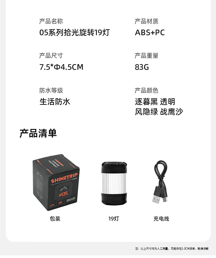山趣(ShineTrip)户外05系拾光旋转19灯指尖旋转多玩法四档调节精致露营氛围灯 透明*1(仅单灯)-赠5款贴纸