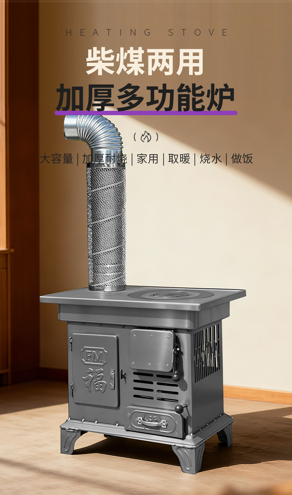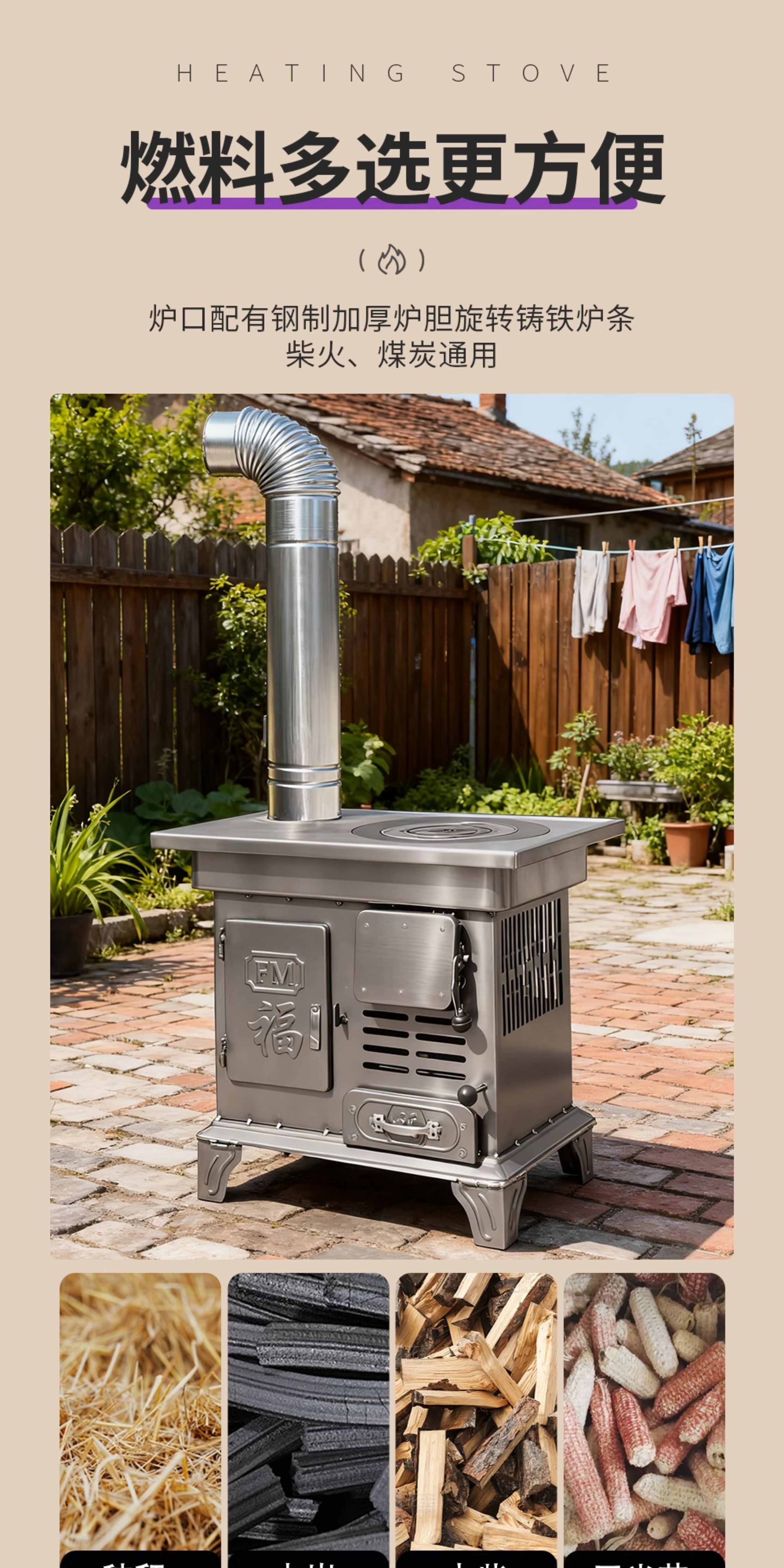 柴火取暖炉柴煤两用室内农村家用采取暖炉新型烤火炉无烟2025新型 特大号气化款+4米烟筒2弯头+水箱礼包