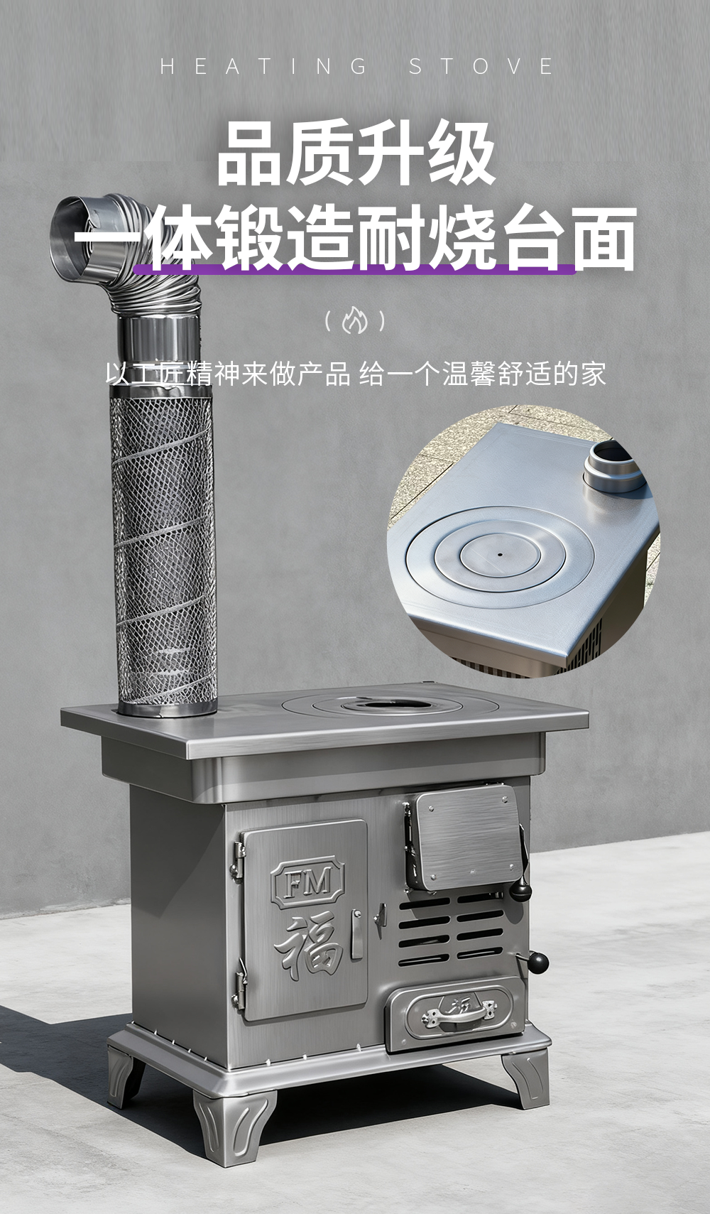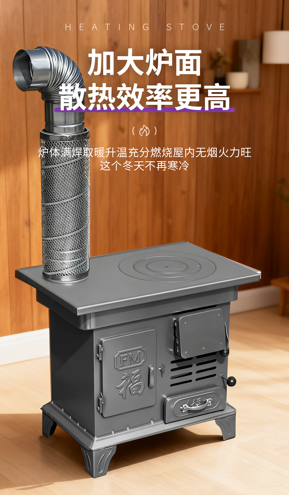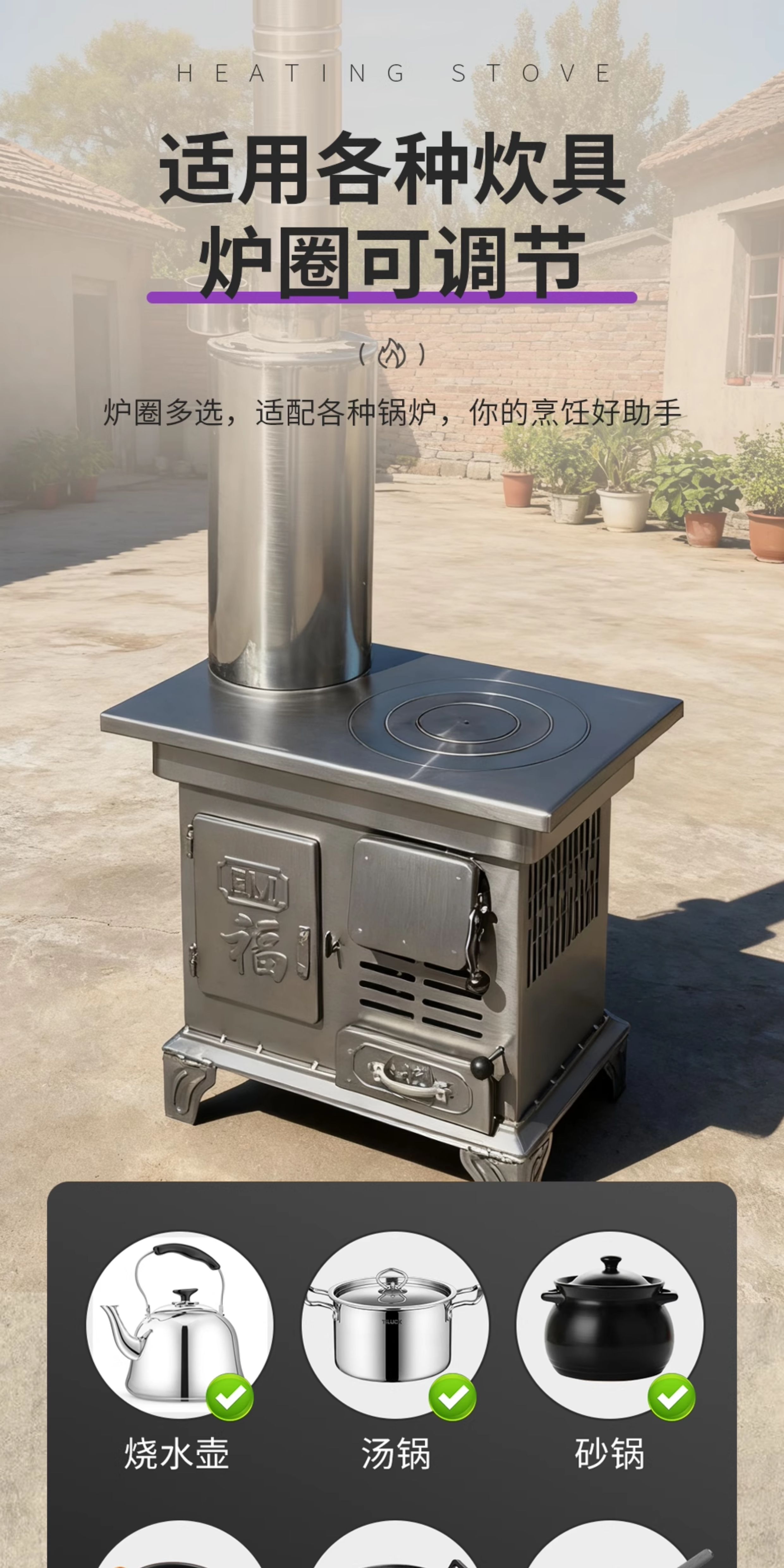 烽点柴火灶烧木柴炉家用农村取暖室内无烟移动加厚铁锅台户外移动升温 58极光火炉+55锅水箱+4米配