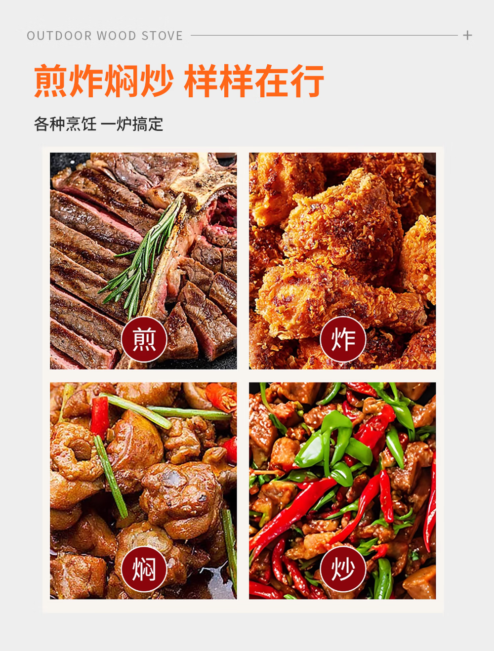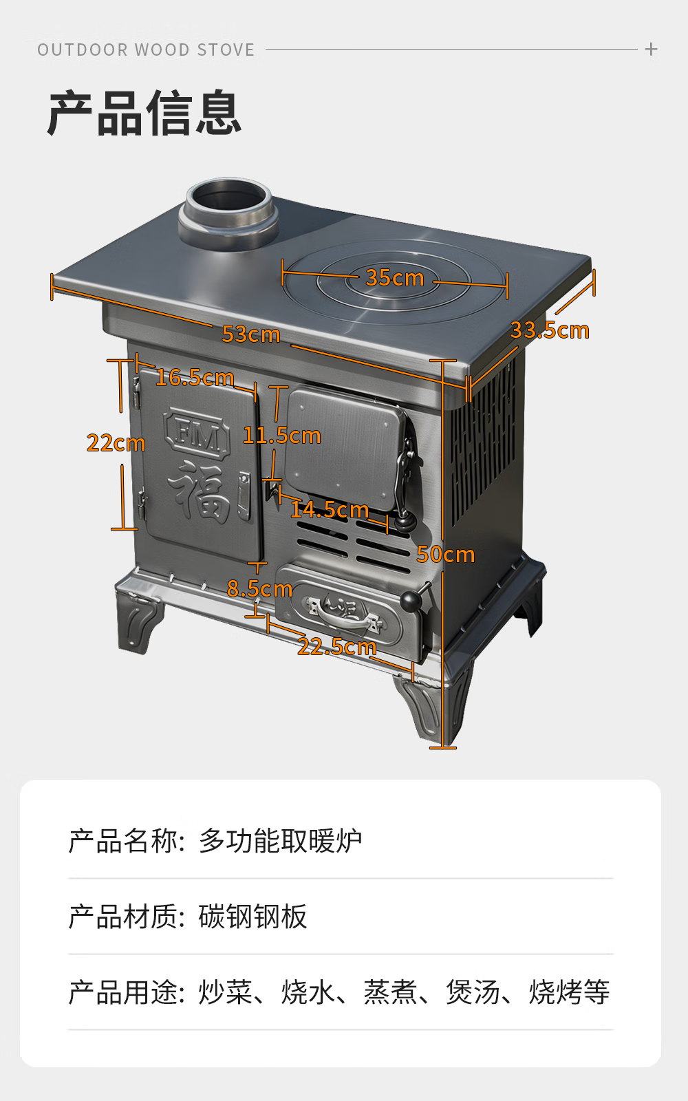 烽点柴火灶农村家用烧木柴无烟取暖炉子移动铸铁大锅台烤箱户外炉具 大号泰钢+40锅3米烟管配件