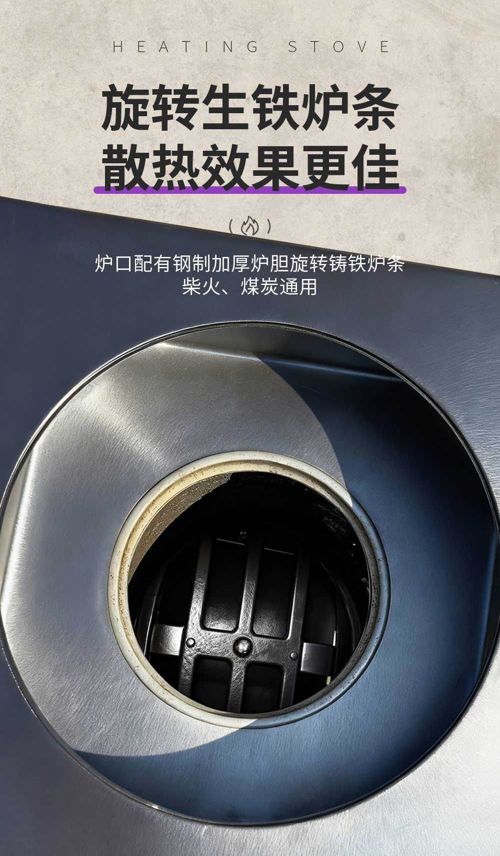 【送货上门】昊燃·取暖炉农村冬季新款气化炉室内烤火 加厚柴煤两用多功能转盘节能无烟采暖炉回风炉 1米加厚防爆玻璃单桌面 (柴煤两用)
