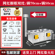 福炉鑫加厚柴火灶农村柴炉灶家用烧木柴节能无烟不锈钢可移动室内户外 左排烟70锅+50CM锅+下水池温水锅