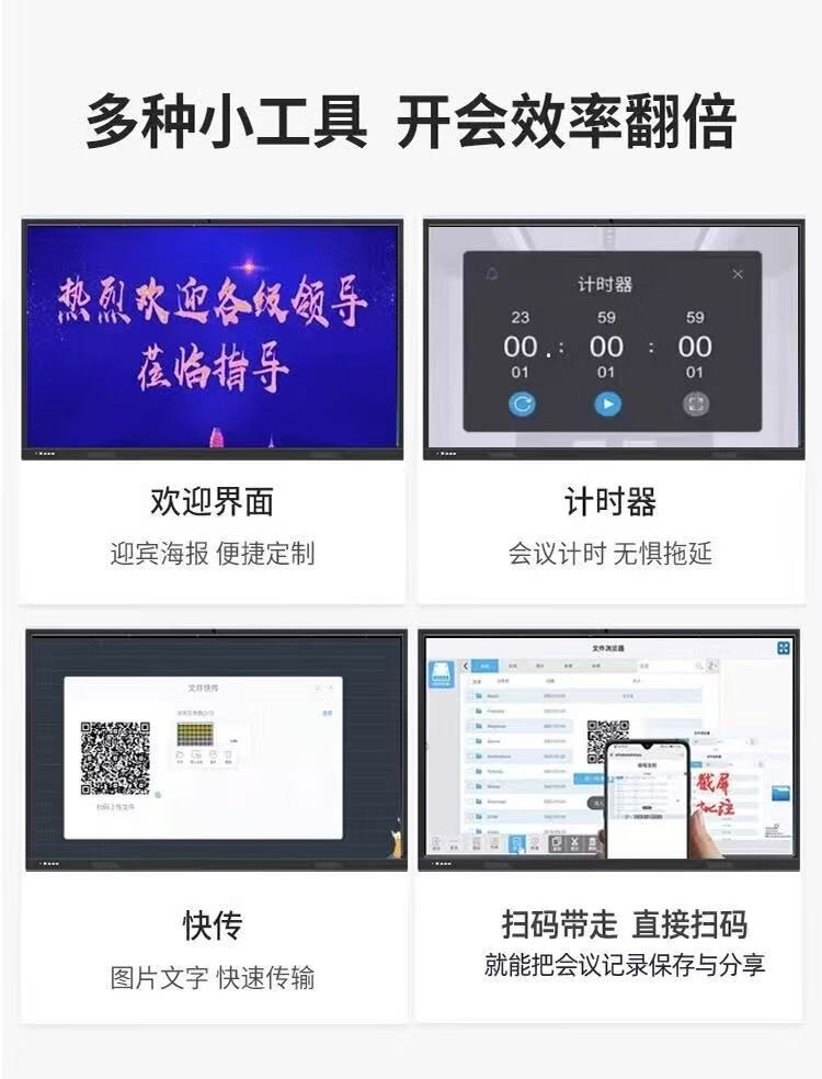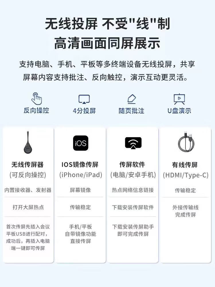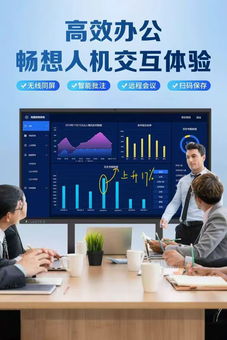 这款会议平板一体机是很多人都在用的,对比了很多家,最终还是选择了这款。功能齐全,可以直接手机投屏,还有扫码分享等功能,用了一下白板书写、远程会议等功能,简单方便。可以根据自己的需要进行设置,总体来说效果惊艳。外观也很大气,显示效果非常棒,白板书写的体验也很好。