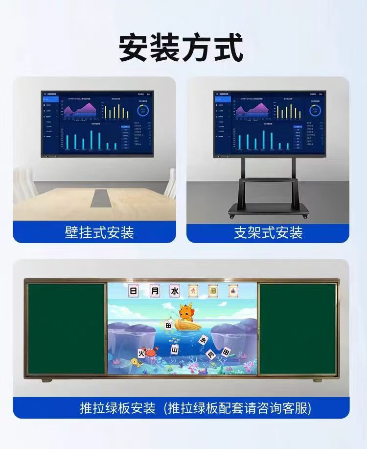 互视达(HUSHIDA)75英寸教学绿板多媒体一体机推拉黑板教室智慧教育会议触摸电子白板 安卓+Win i5 BGCM-75