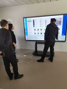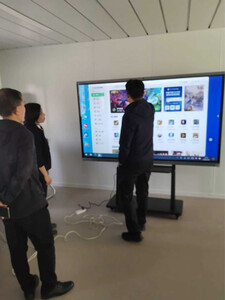 这台双系统的设备也安装完毕了,播放效果很好,画面清晰度很够,很不错的一个一体机,可以触摸,可以使用白板软件,可以投屏,可以播放视频,培训开会的时候用起来也是非常之方便,音响也足够大声,客服服务还是一如既往的好,很细心的教我们使用,很专业