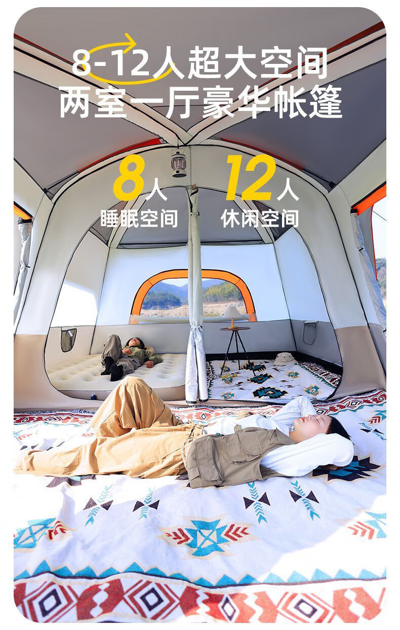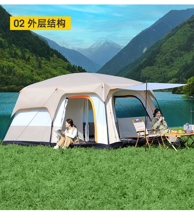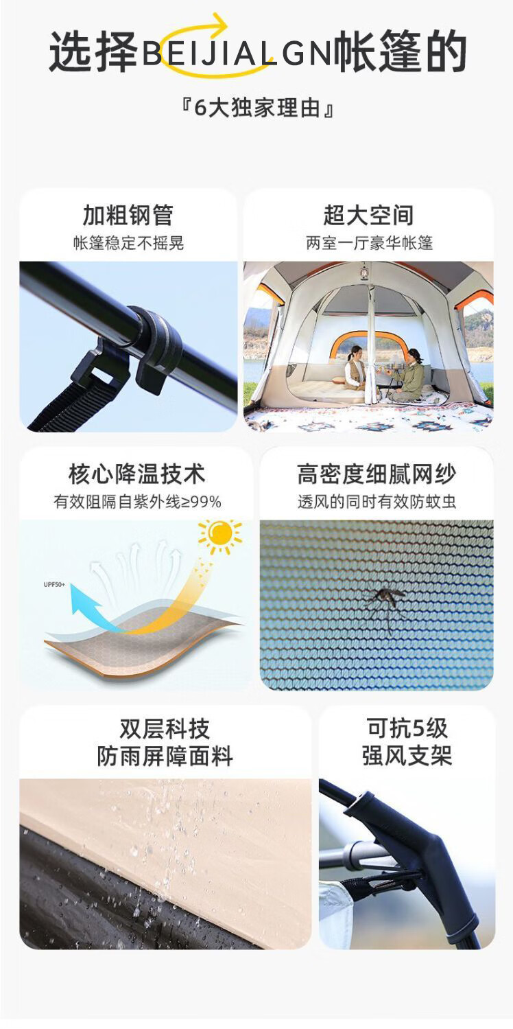 北极狼帐篷户外露营防雨过夜遮阳防晒加大两室一厅多人家庭野外野餐装备 两室一厅【4-8人】豪华出游套装