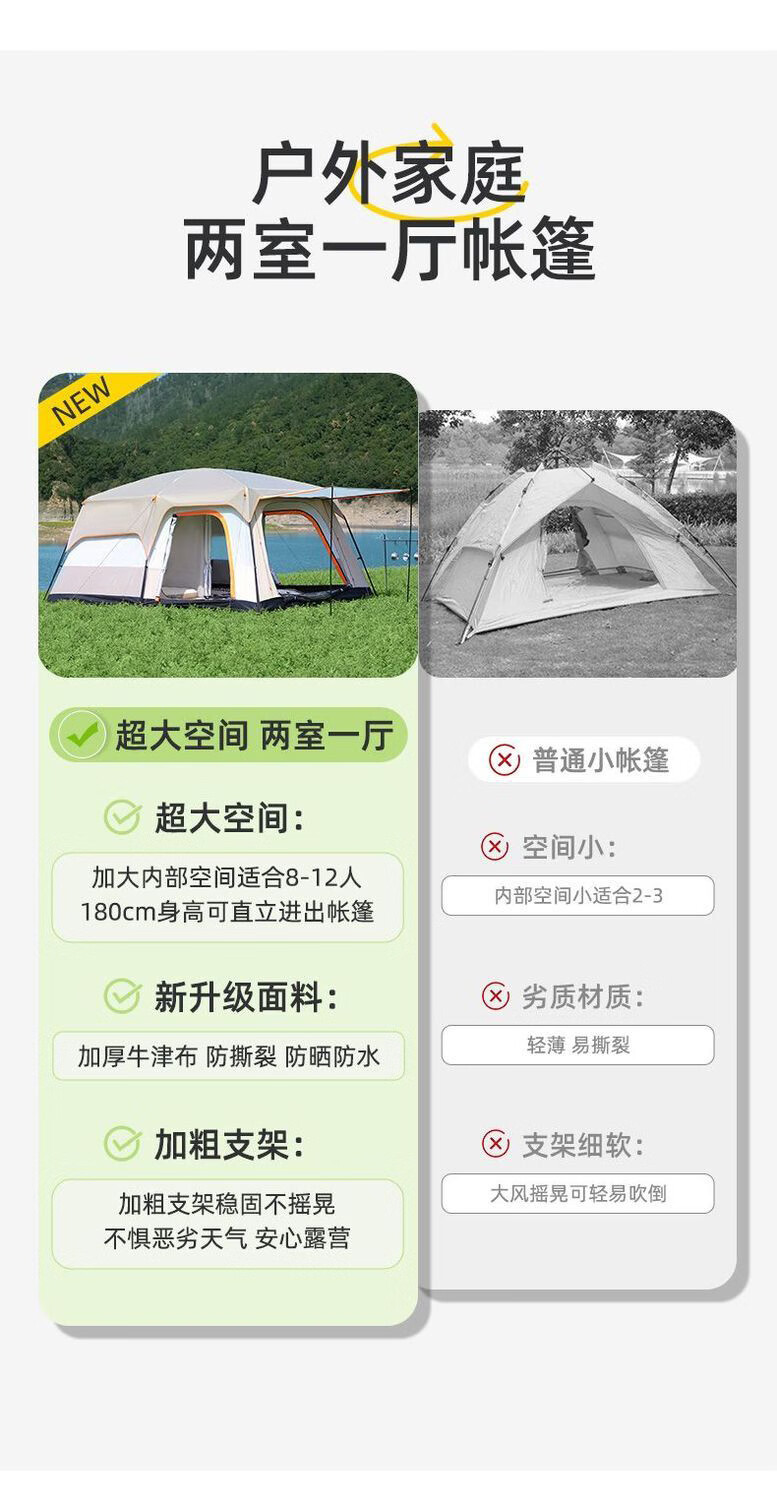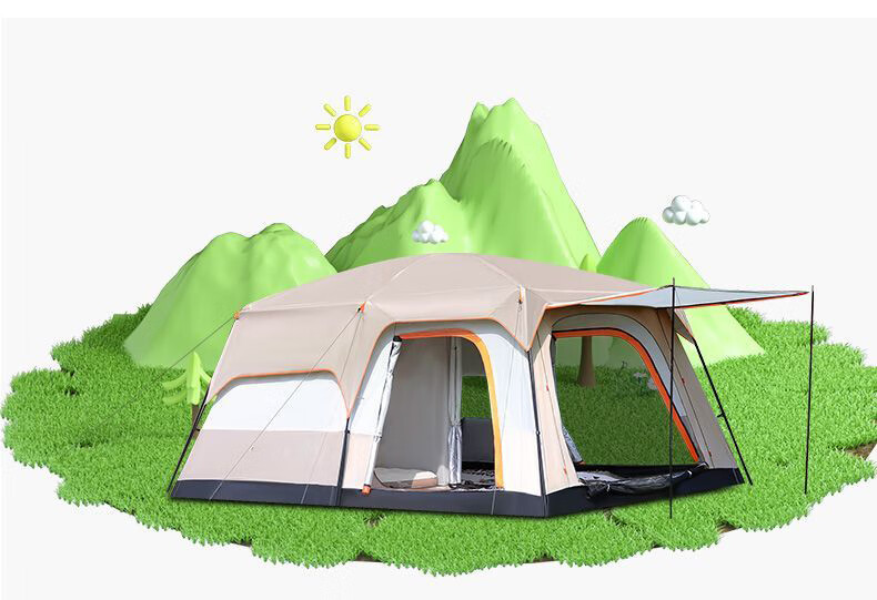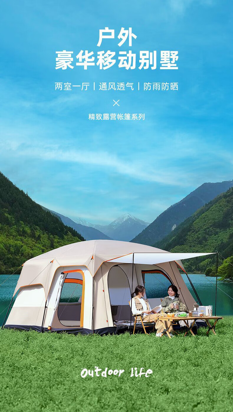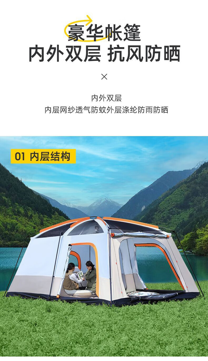 北极狼帐篷户外露营防雨过夜遮阳防晒加大两室一厅多人家庭野外野餐装备 两室一厅【4-8人】豪华出游套装