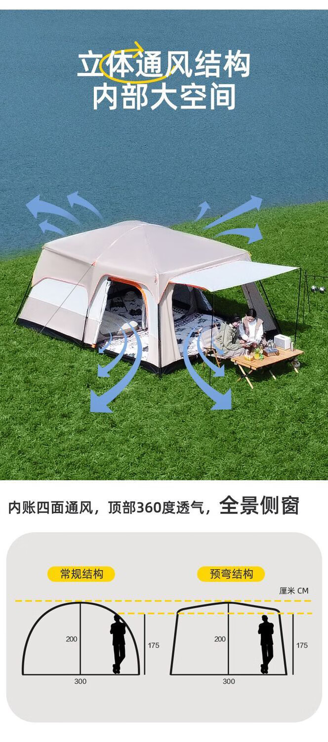 何佳功新燕尾天幕户外露营懒人免安装加厚黑胶防晒遮阳防雨速搭天幕 速搭型12㎡银胶天幕3.3*3.6米2-4人(1