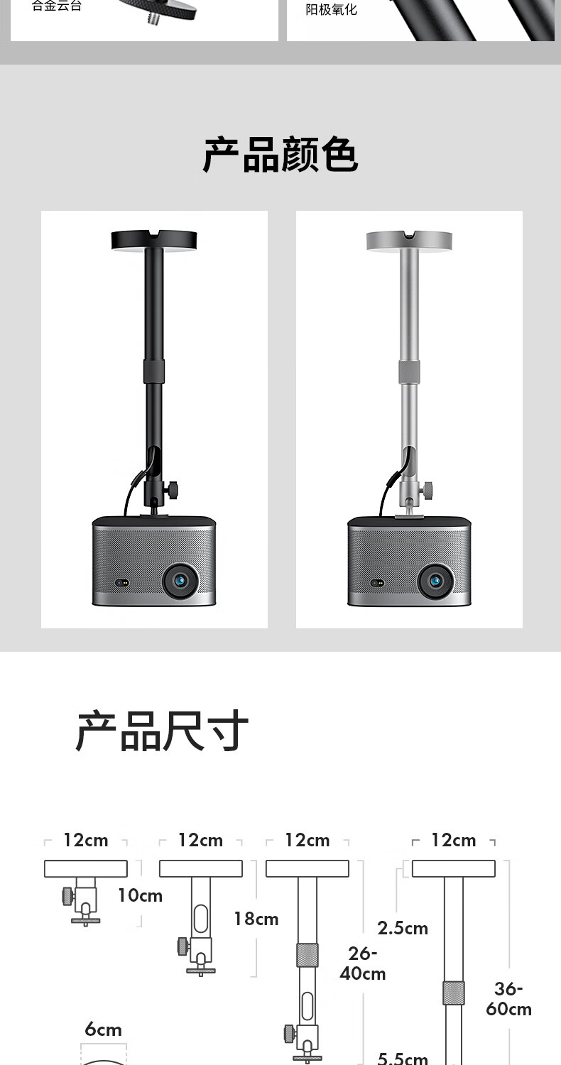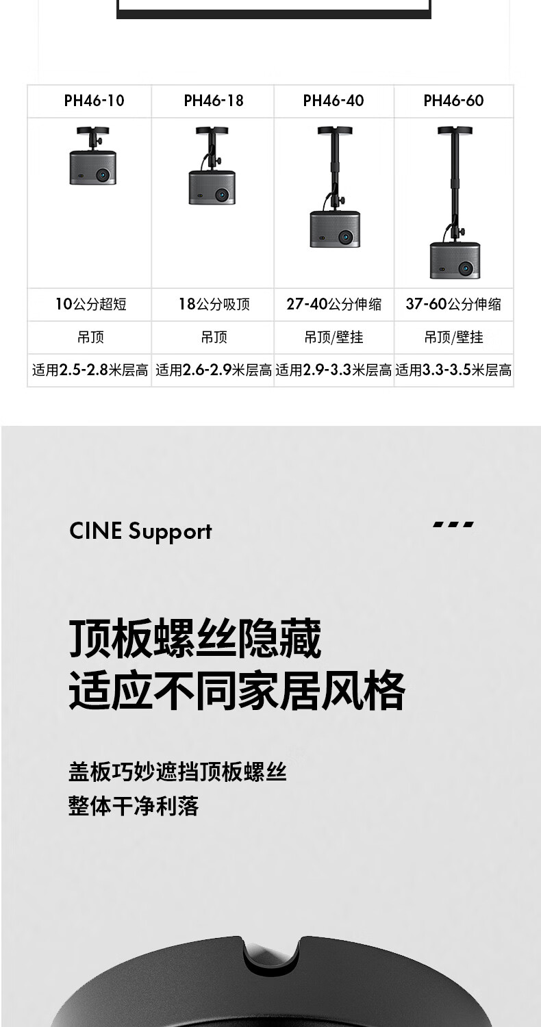 思影(CINE)PH46投影仪吊架壁挂支架家用吊顶悬挂架子极米z7x h6当贝x3 x5海信坚果n1大眼橙投影机墙壁挂架 PH46-18银色(18公分吊架)