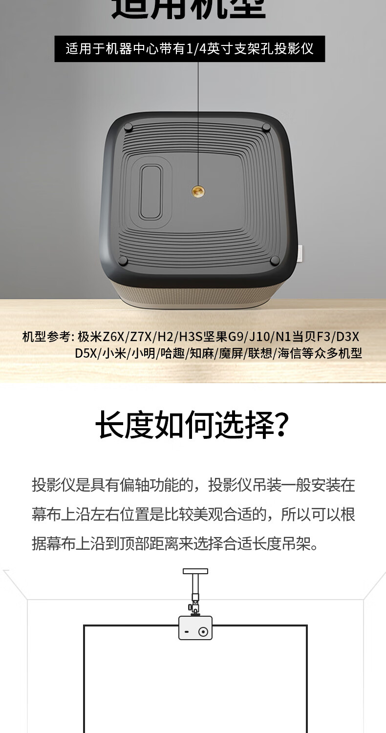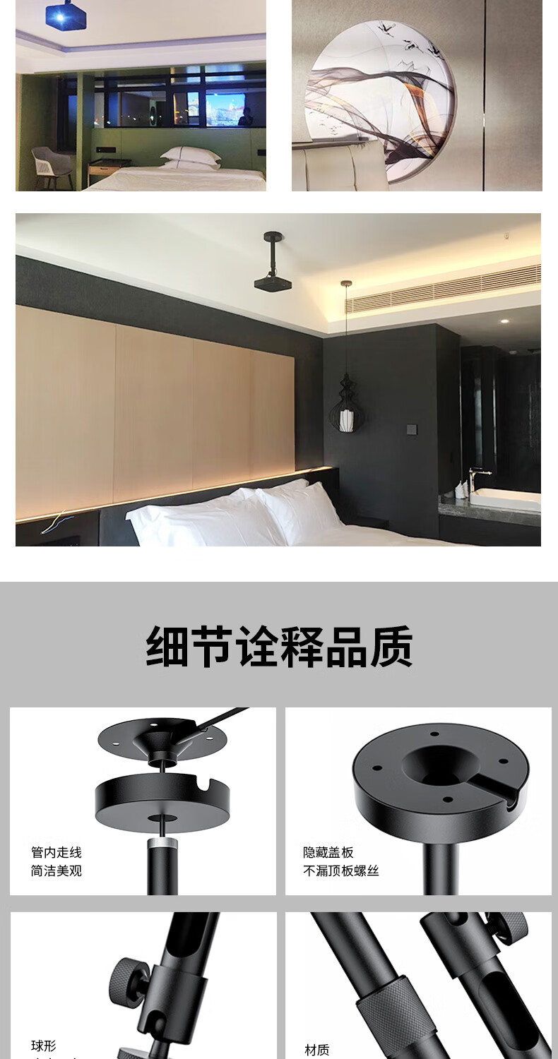 RedGoldLeafredgolleaf红金叶投影仪通用吊架壁挂支架天花吊架吸顶吊架投影支架 白色 43cm-65cm伸缩方管(承重15KG)