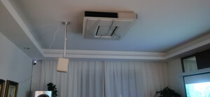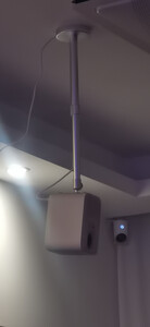 屏幕一直没搞好,所以投影仪也没法装,周末终于都搞好了把投影仪给定了位安装好,毕竟只有一个固定脚相比四爪的那种稍差一些,但装在碰不到的位置也还好,中间还留有了穿线孔,美观。