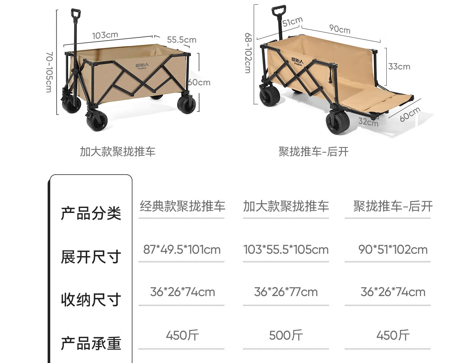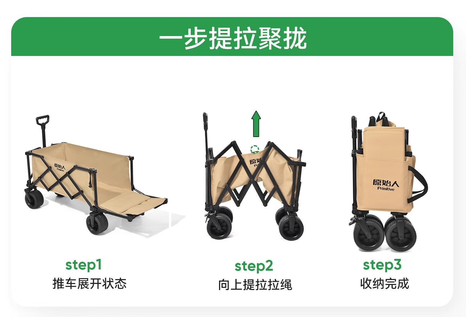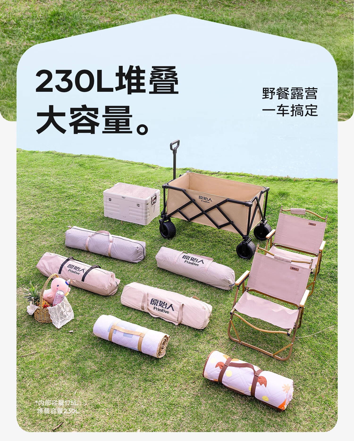 原始人(The Primitive)露营车便携户外露营推车折叠手拉车遛娃推车野餐野营小拖车聚拢款 230L 后开款【铝合金桌板套餐】