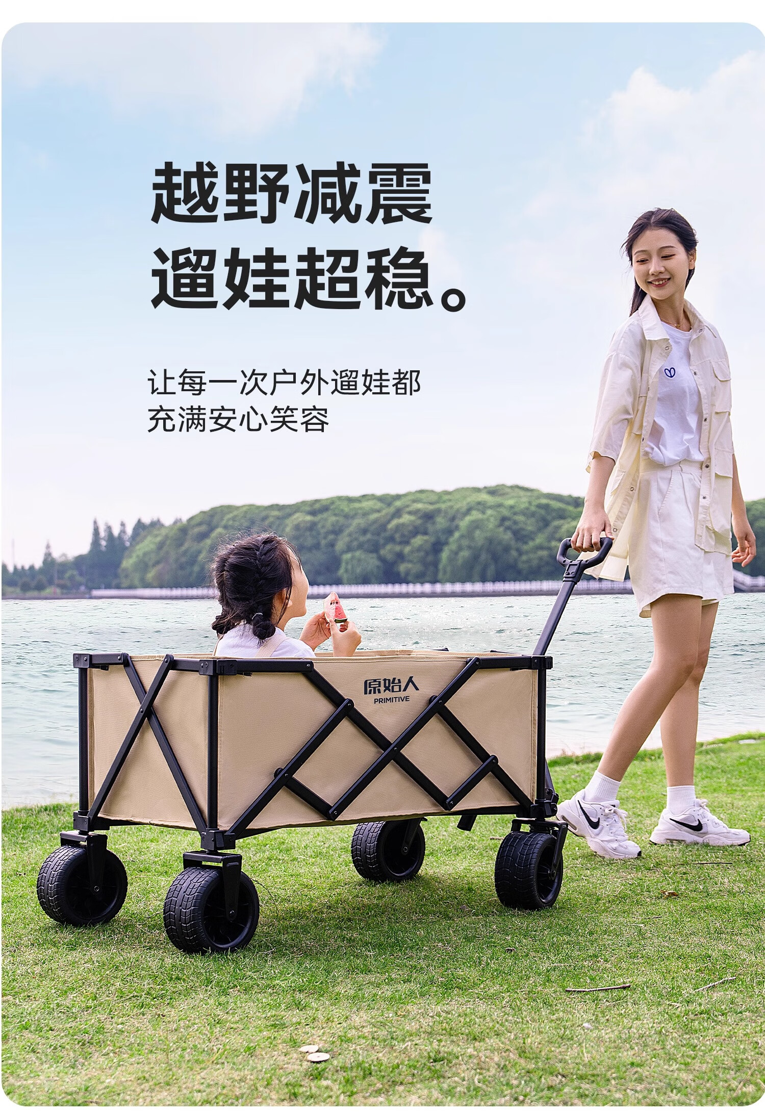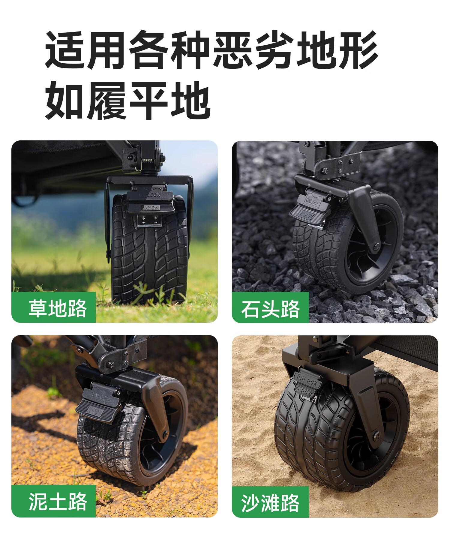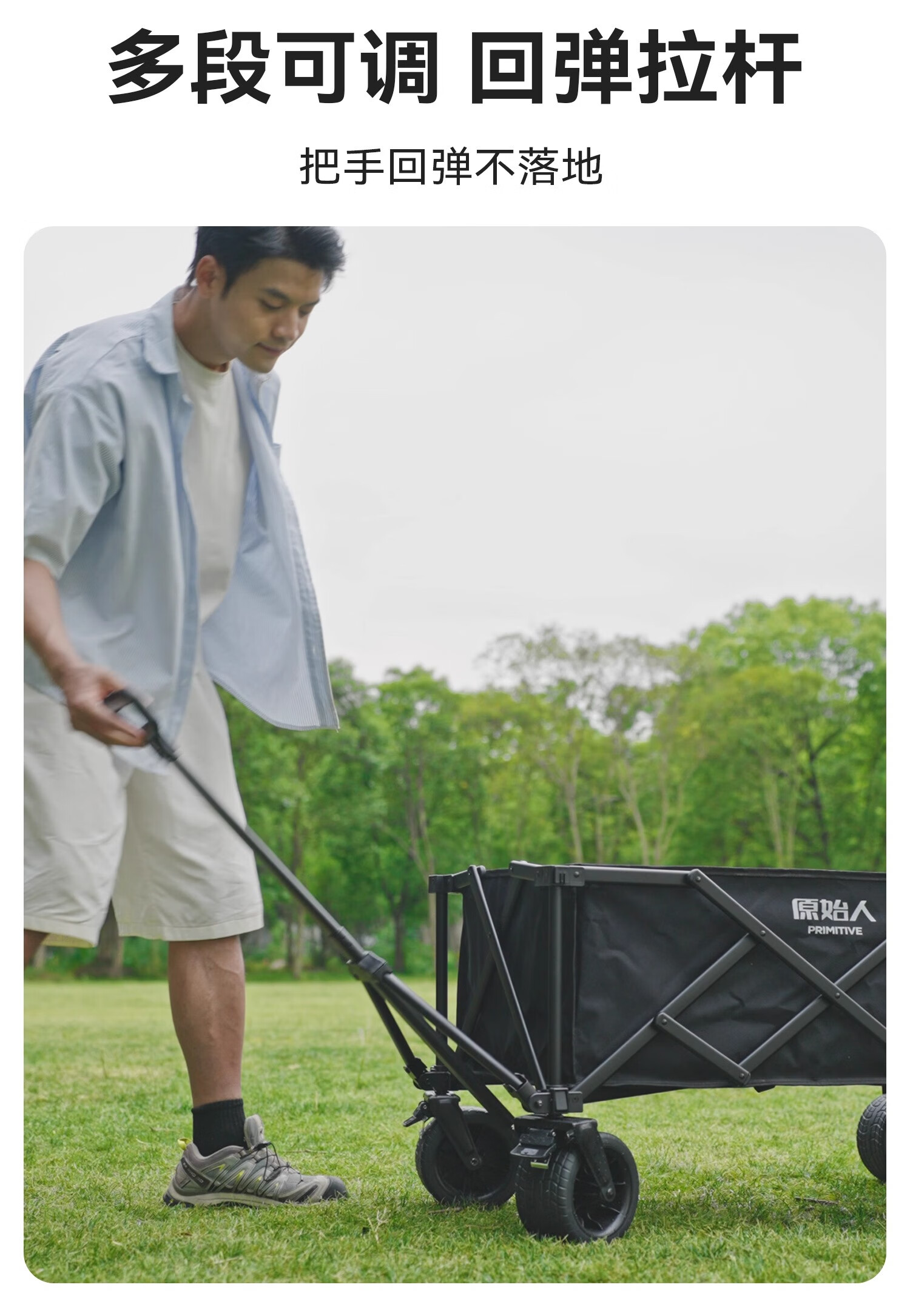 原始人露营推车营地车超大铝合金户外折叠野营野餐桌板遛娃手拉车拖车 220L 曜石黑【10cm宽轮+双刹车】