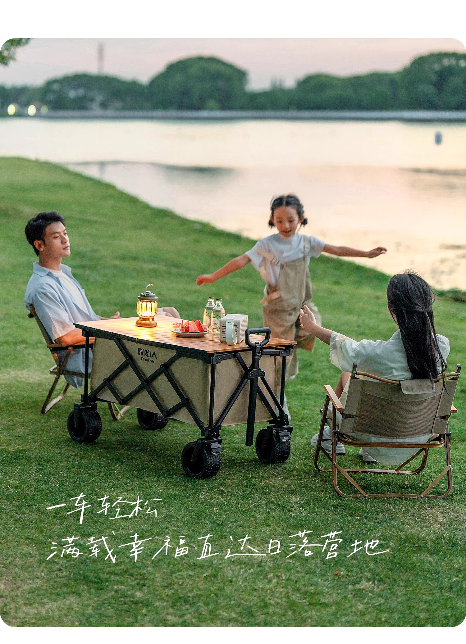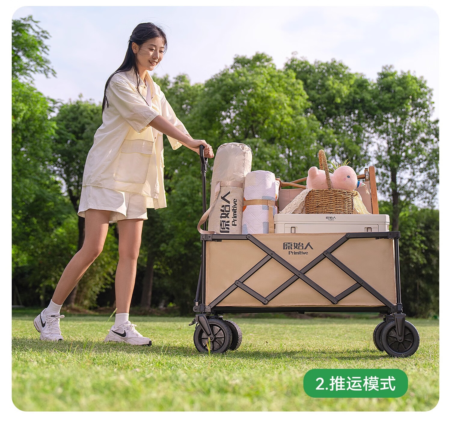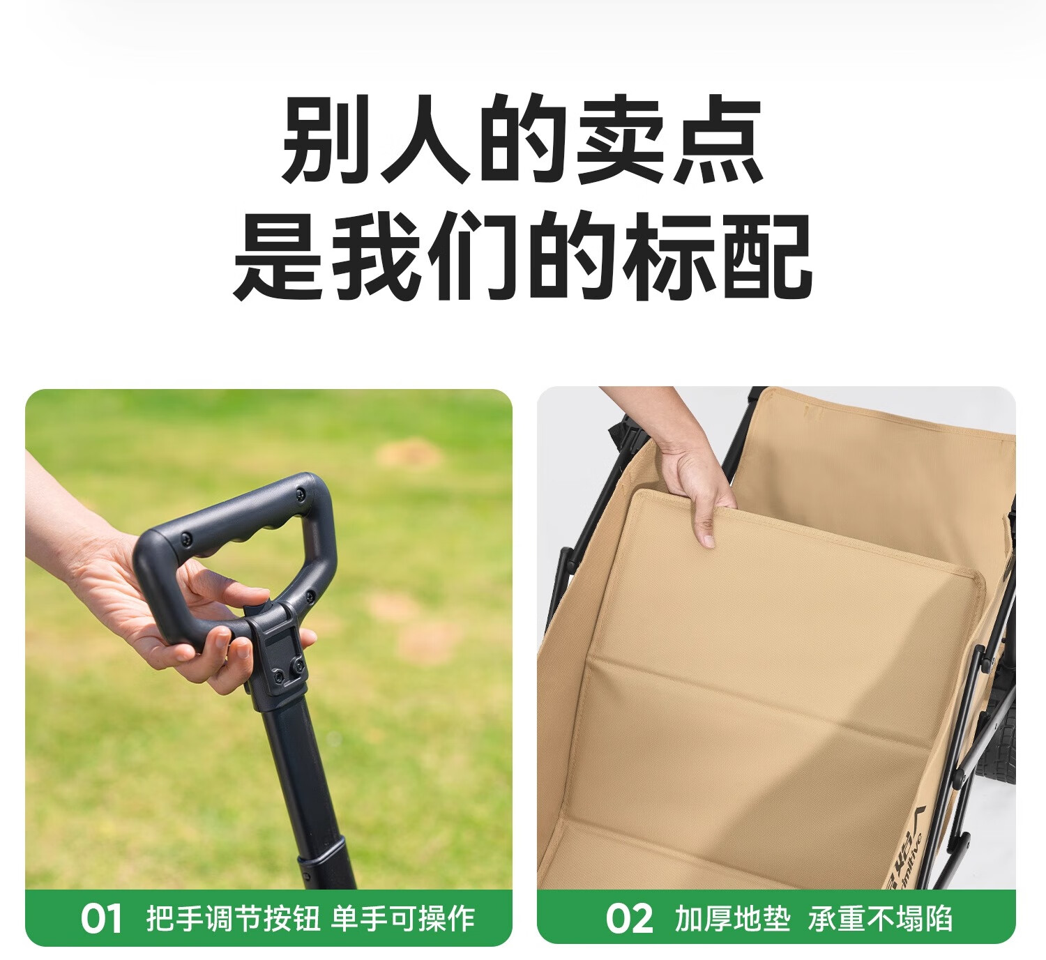 疆屿户外露营折叠小推车旅行营地野营野餐摆摊儿童可躺野餐聚拢车 卡其【聚拢拓野款】+86蛋卷桌面