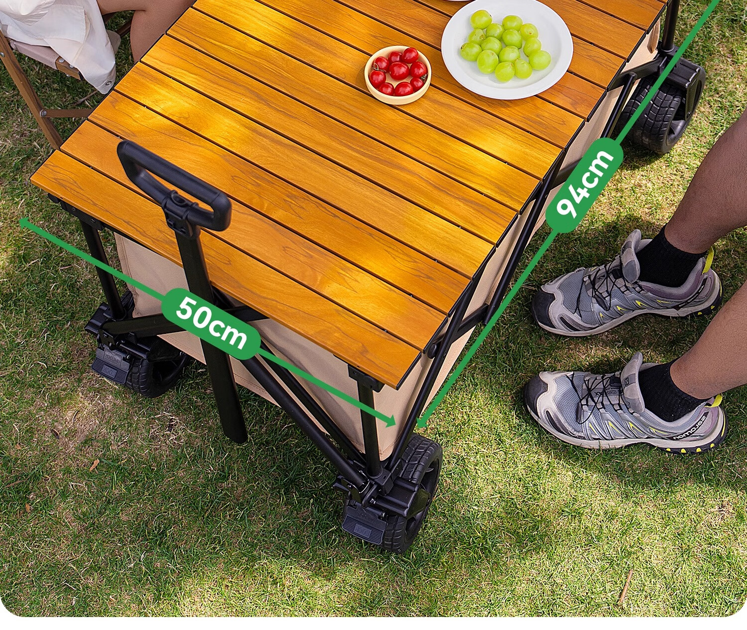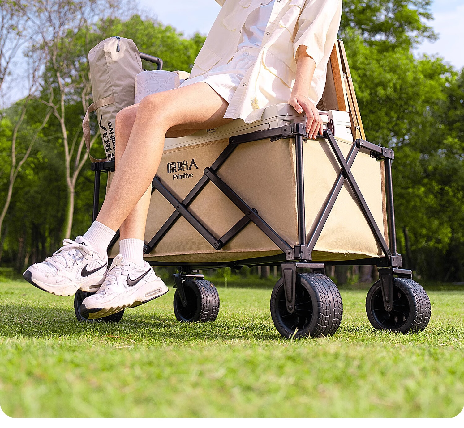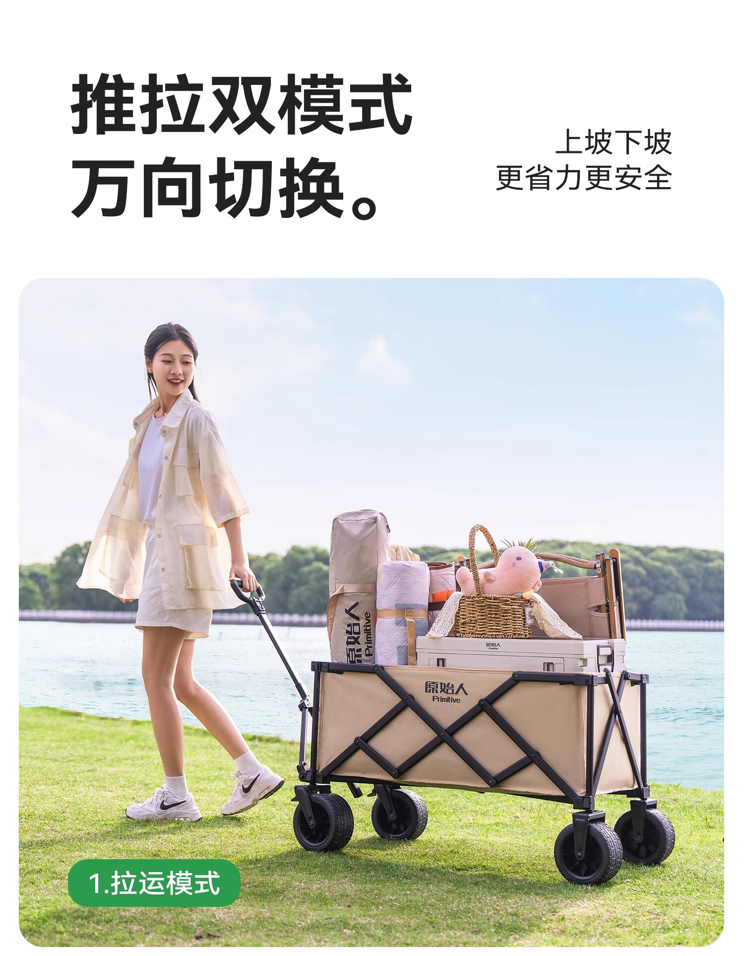 疆屿户外露营折叠小推车旅行营地野营野餐摆摊儿童可躺野餐聚拢车 卡其【聚拢拓野款】+86蛋卷桌面