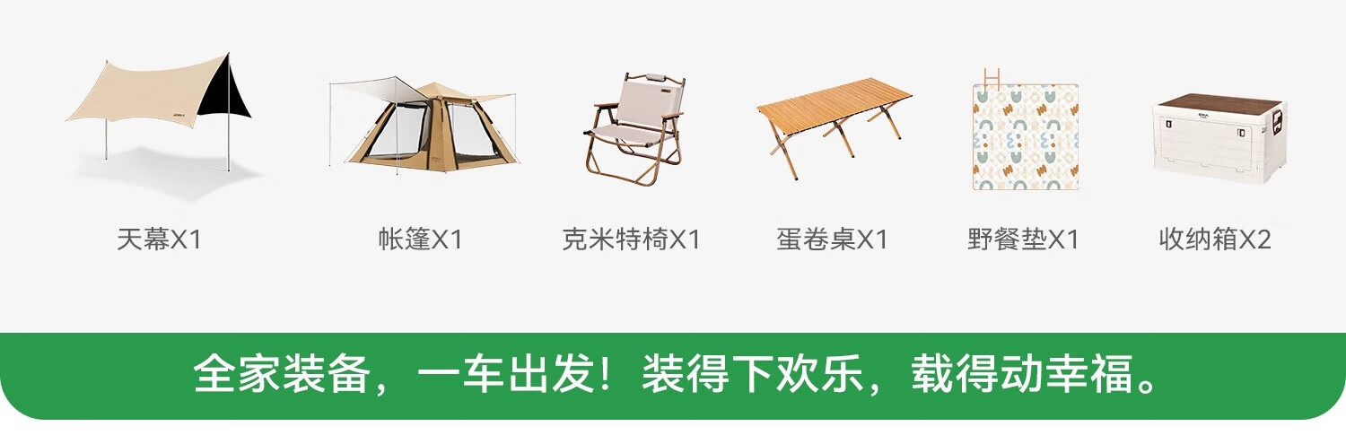 原始人(The Primitive)钛黑胶天幕帐篷户外便携露营六角防晒新型速开野营新款遮光遮阳棚 35㎡+150蛋卷桌+月亮椅*6