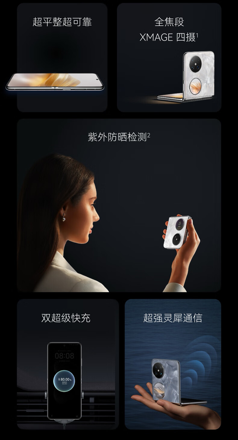 华为(HUAWEI)Pocket 2 优享版 华为折叠屏鸿蒙手机 超平整超可靠 全焦段XMAGE四摄 雅黑 12GB+256GB 官方标配