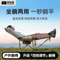 探险者户外折叠椅躺椅露营午休椅子便携家用阳台钓鱼椅野餐沙滩坐躺两用 【四档调节款-带脚托】灰色 卡扣调节/加粗椅架
