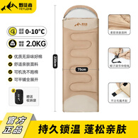 野徒者睡袋户外隔脏睡袋成人加厚露营睡袋登山防寒可拼接双人四季通用 【2.0KG】连帽单人款睡袋-暖沙色 300T春亚纺材质