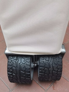 轮子超级大号,比电动车的轮子更宽,适合多种地形。 容量150L,手柄很有质感,拉着很省力又稳,收纳起来不占地方,可以放车里后备箱!