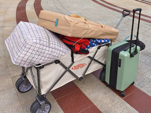 露营车收到了,组装完毕,质量挺好,容量大,轮子宽大厚实,出行一车够用。