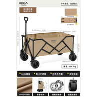原始人露营推车户外营地拖车超大可折叠手推野餐野营手拉车便携式小拉车 260L 加大卡其【轮宽10cm可拆卸】