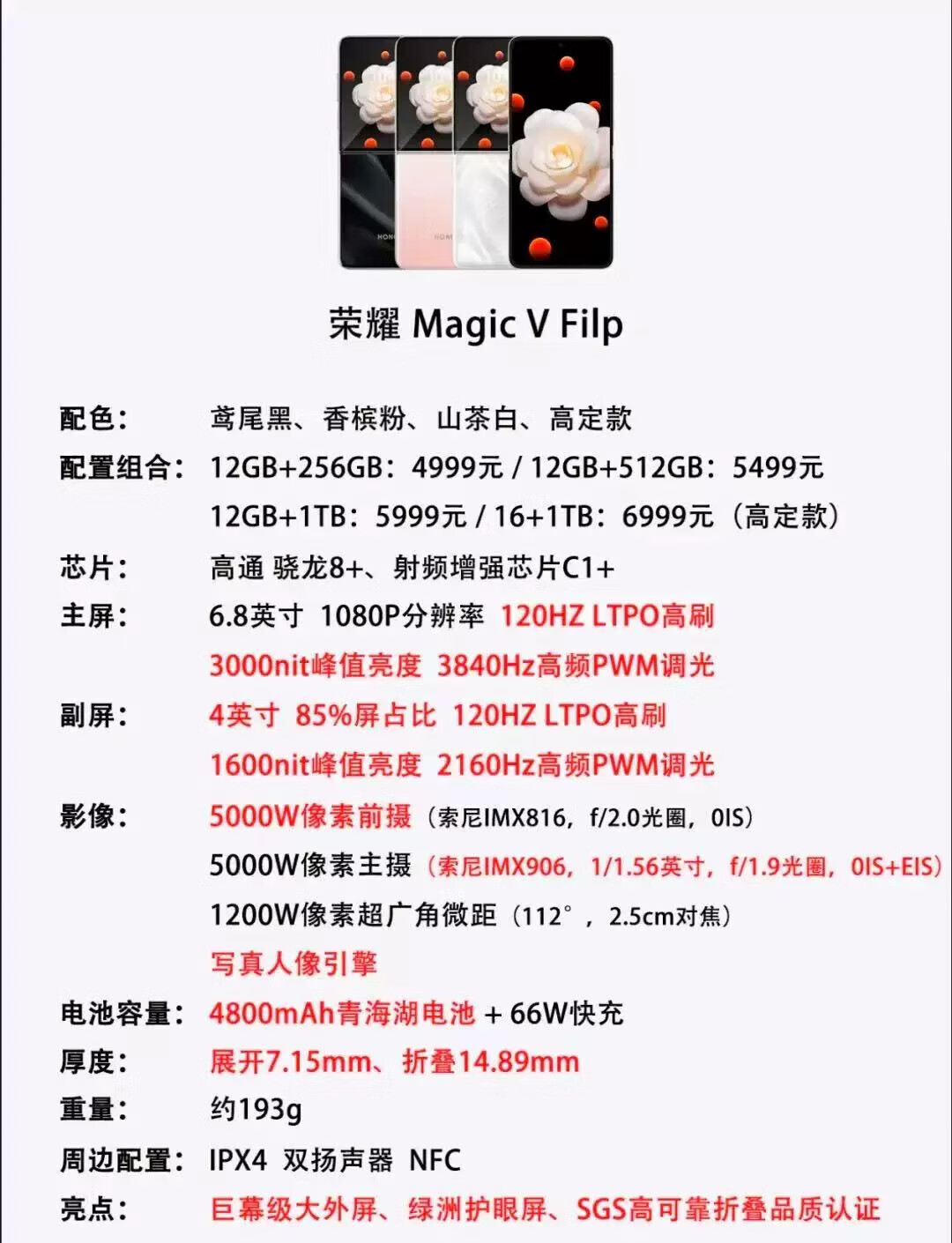 HONOR荣耀MagicVFlip新款小折叠屏手机4.0英寸大外屏单反级补贴 山茶白 12G+1T 赠运费险|详情咨询客服