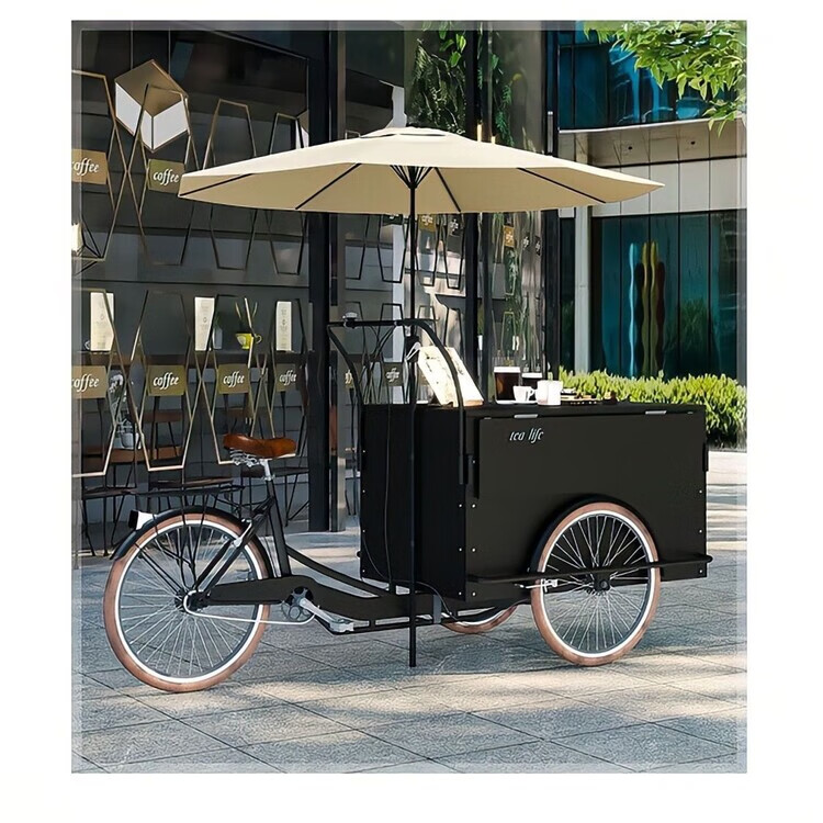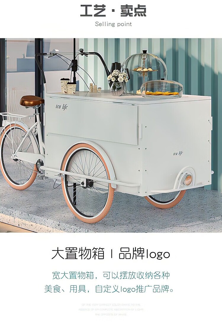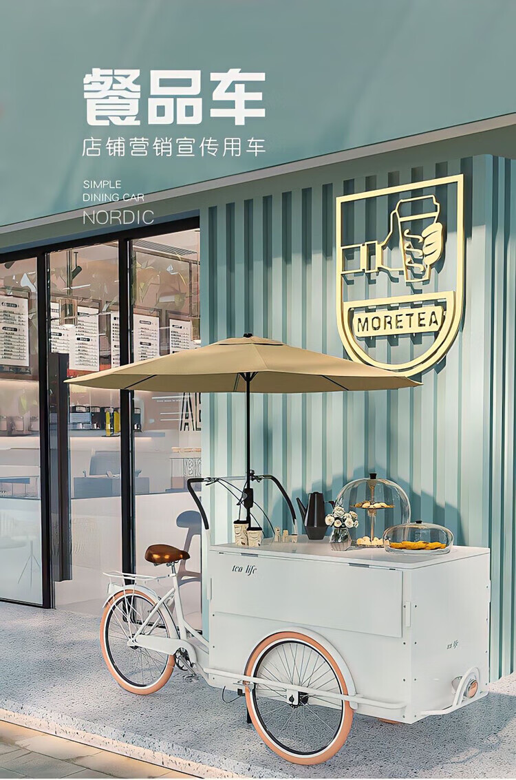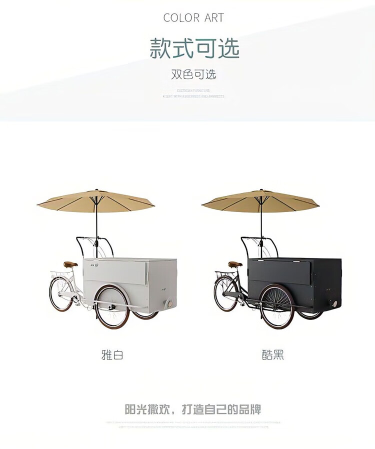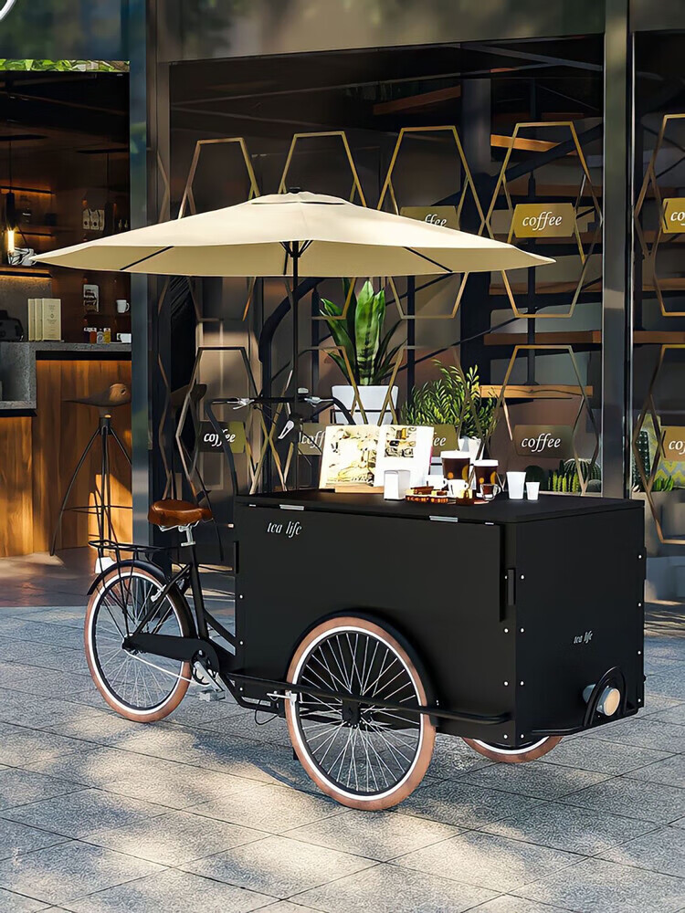 夜市摆摊推车夜市倒骑驴三轮餐车美食流动小吃摊位车可骑行售货车 黑色宣传车+带伞款