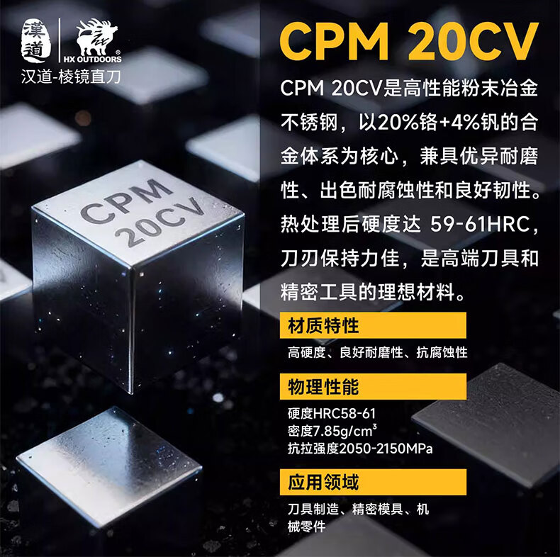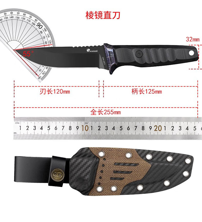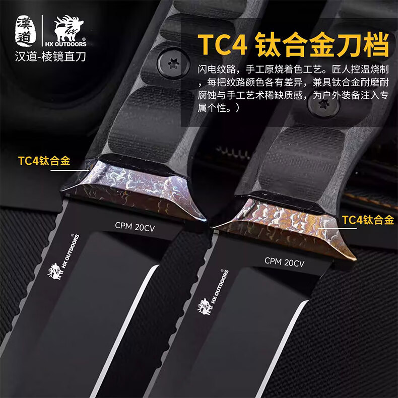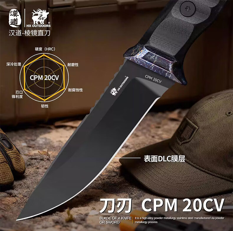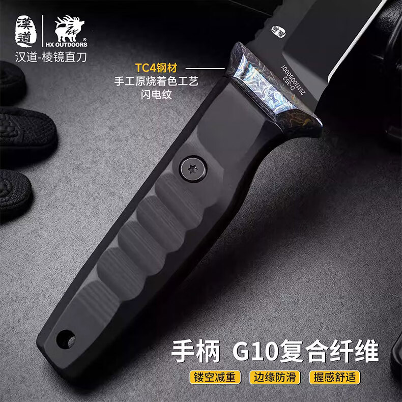 汉道棱镜直刀CPM20CV高硬度锋利户外生存刀防身战术刀收藏把玩刀 黑色